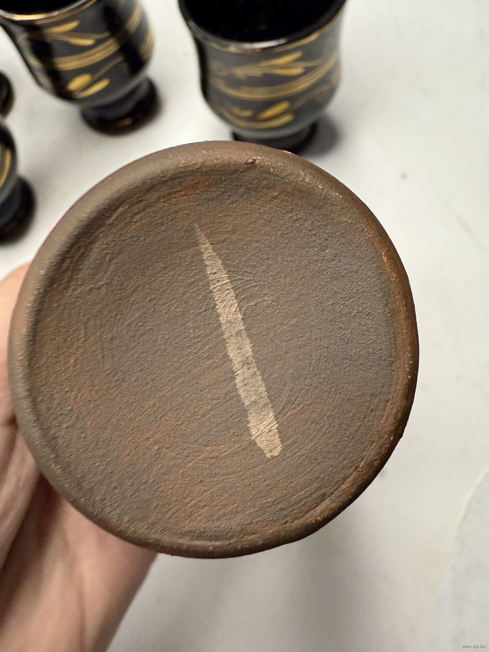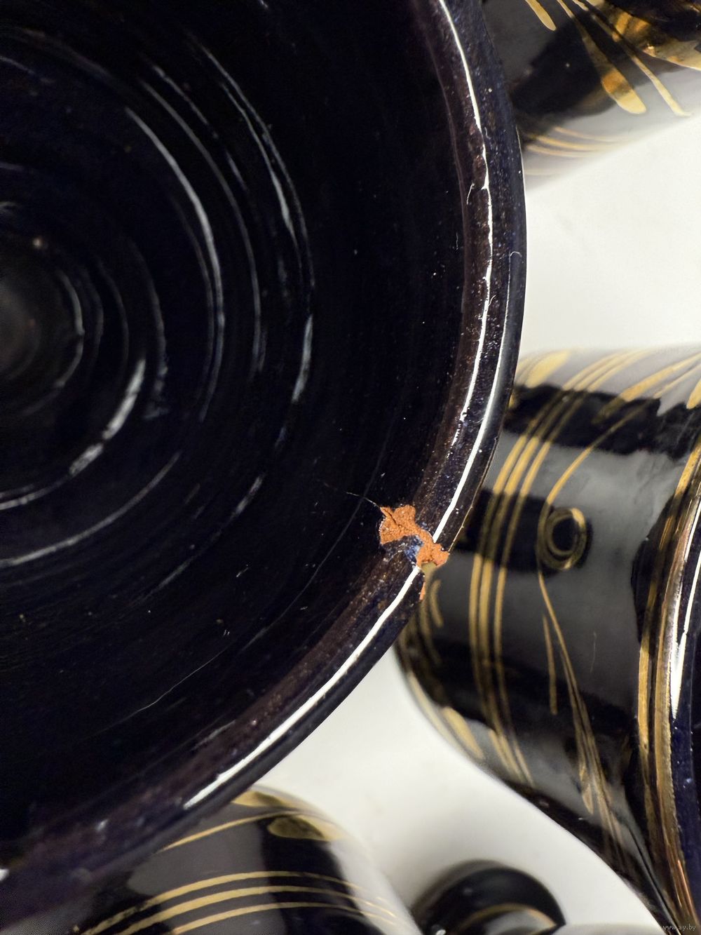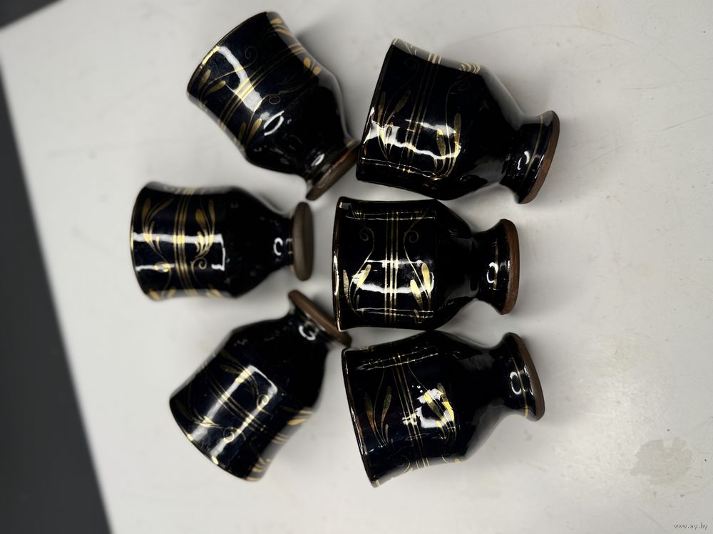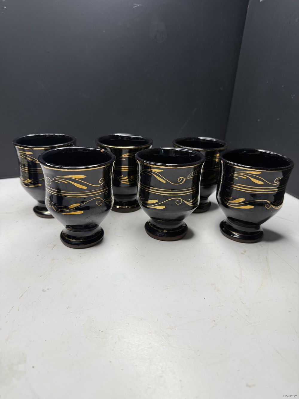 Набор из кувшина и стакана с ленточным орнаментом на чёрном фоне, керамика, роспись, золочение, СССР, 1970-1990 гг