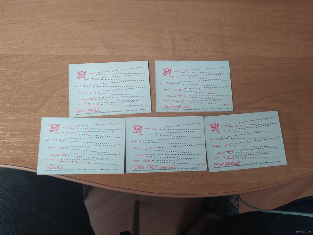 Набор карманных календарей с автомобилями, 1991 г. (5 штук).