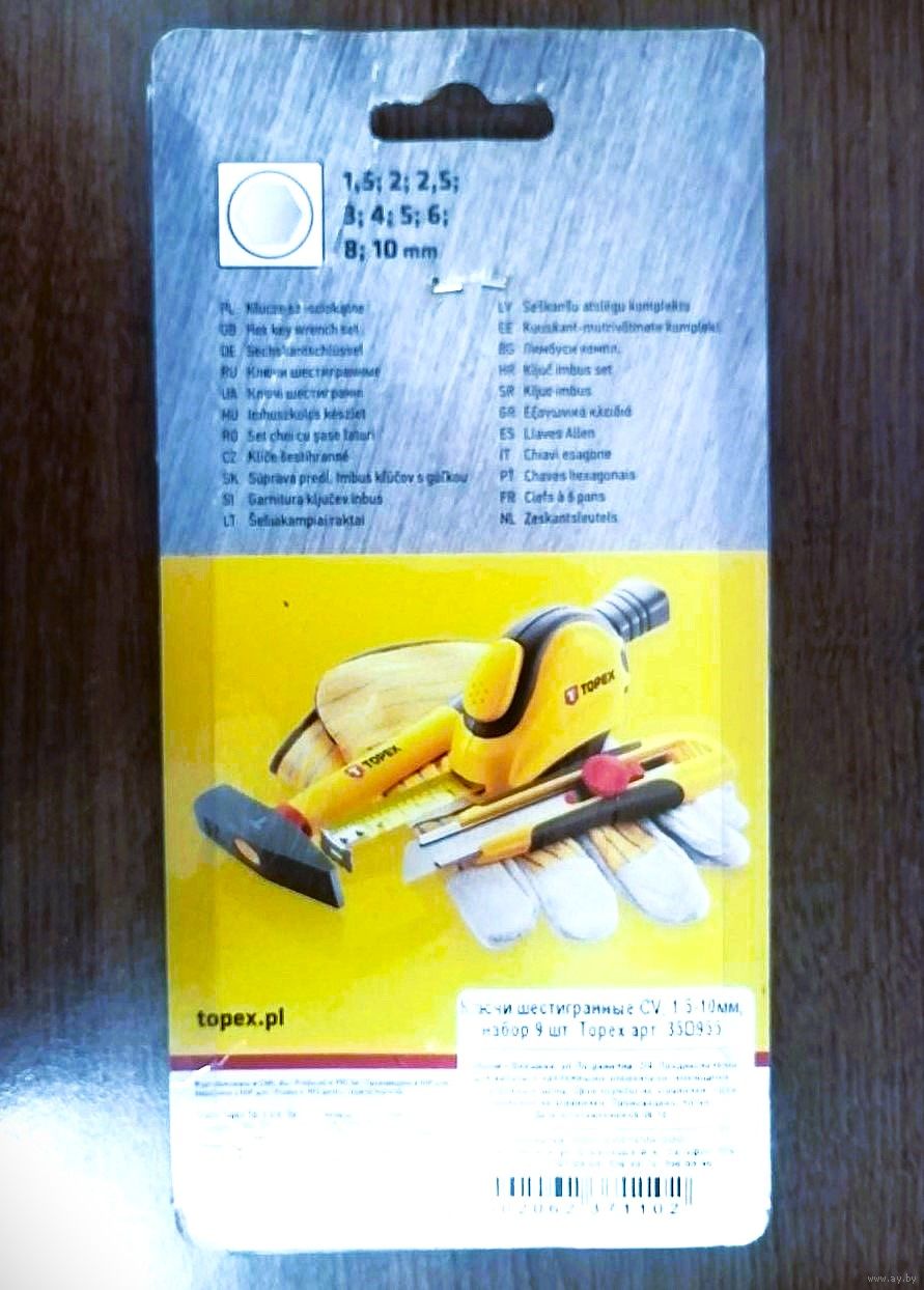 Набор ключей шестигранных TOPEX HEX 1.5;2;2.5;3;4;5;6;8;10