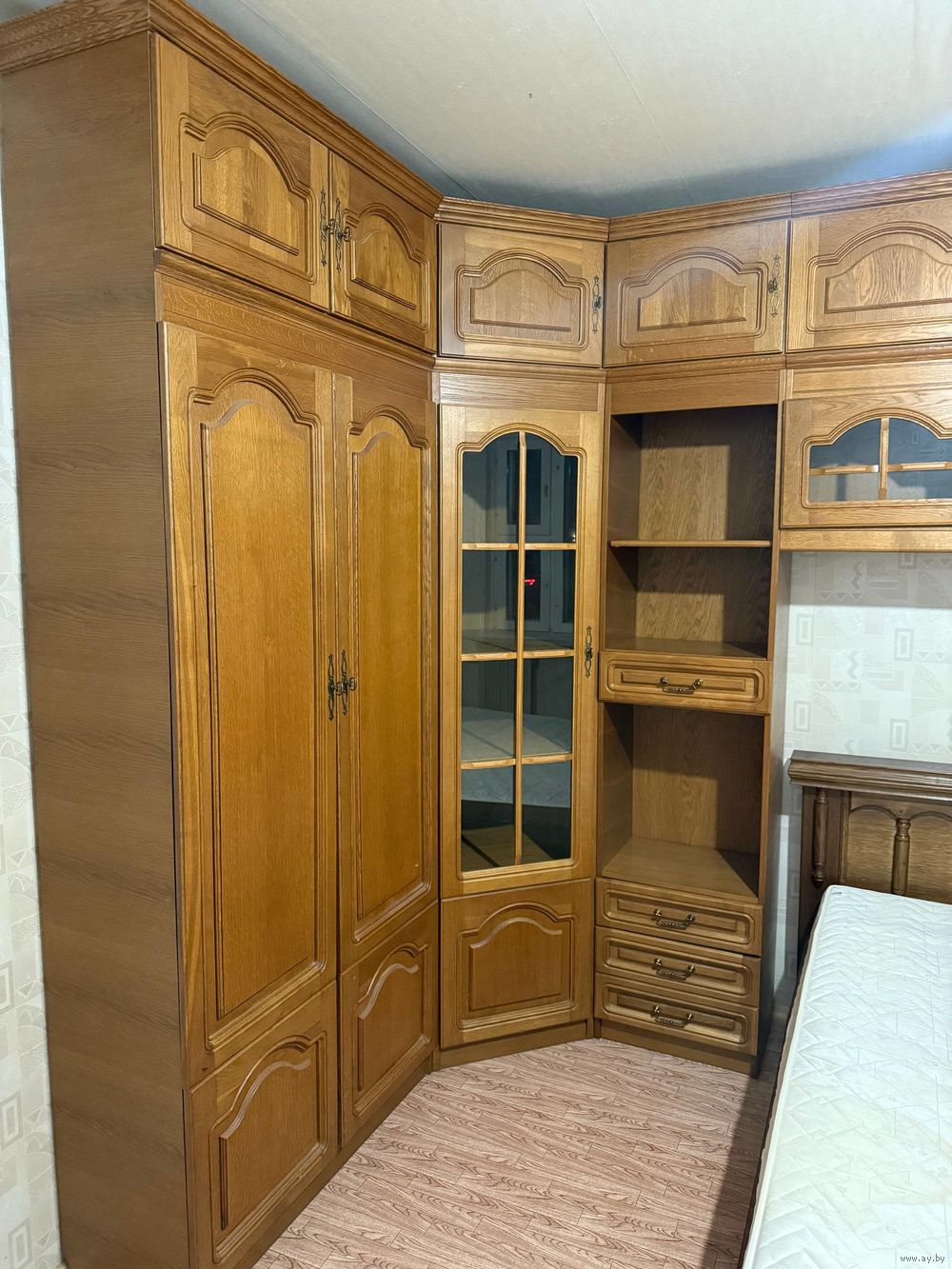 Отличный вариант для большой спальни или дачи: много места для хранения одежды, постельного белья и книг/декора за стеклом.