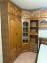Комплект мебели для спальни из натурального дерева (массив / шпон), в классическом стиле, цвет тёплый орех. В комплект входит двуспальная кровать и большой модульный шкаф‑стенка с пеналом, витринами и множеством ящиков, всё в одном стиле, смотрится как единая гарнитура.