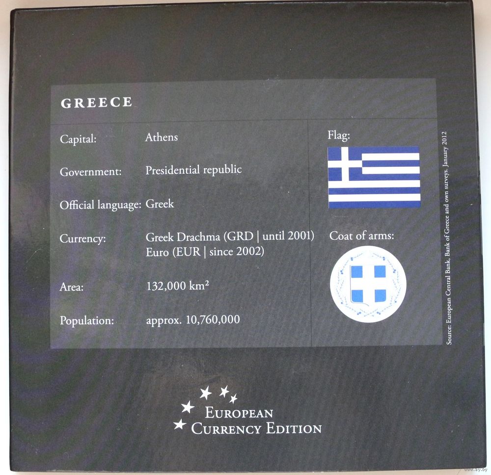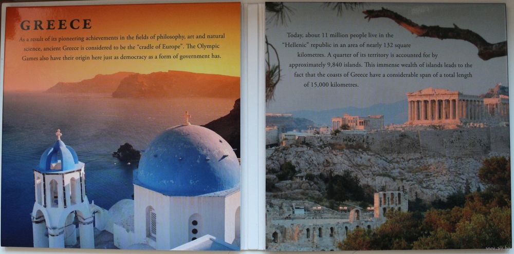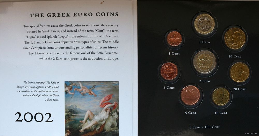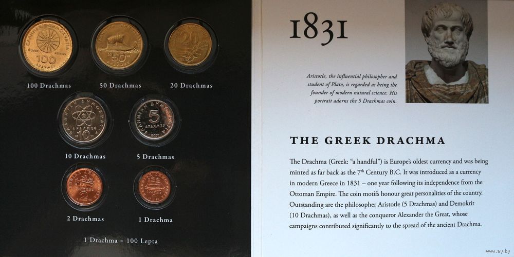 Набор монет "Греция: греческая драхма и евро" (100, 50, 20, 10, 5, 2, 1 драхма)