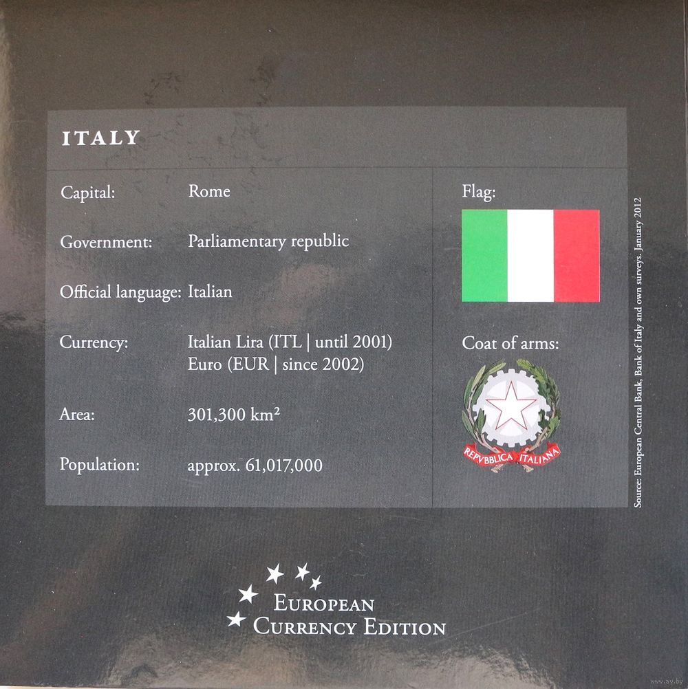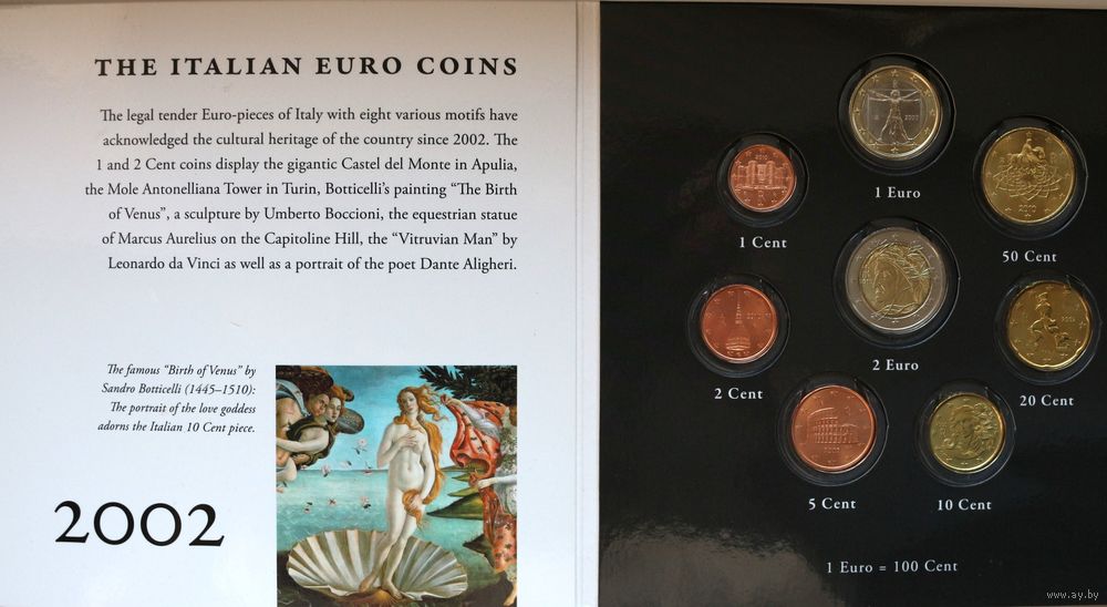 Набор монет "Италия: итальянская лира и евро" (1000, 500, 200, 100, 50, 20, 10, 5 лир)