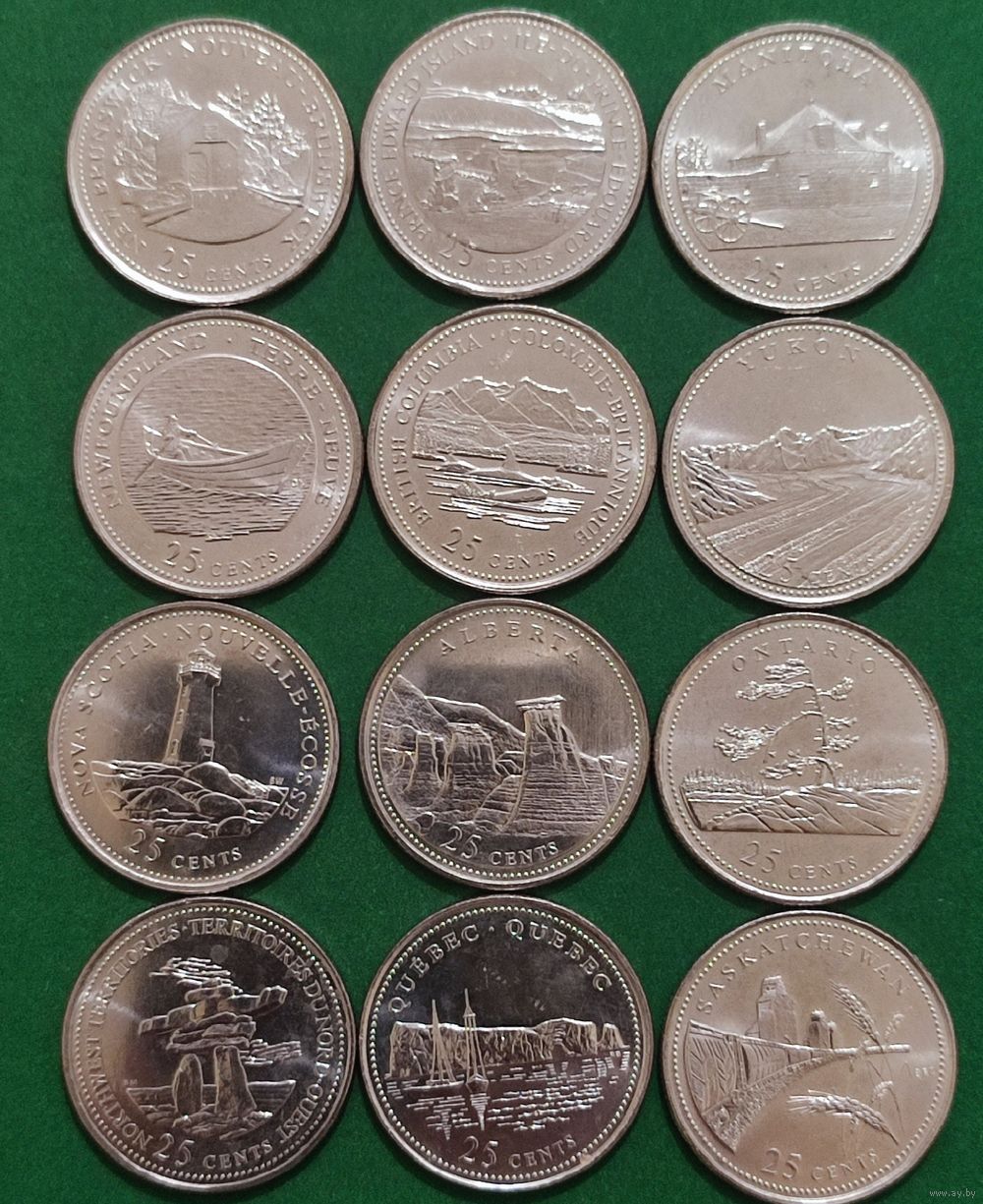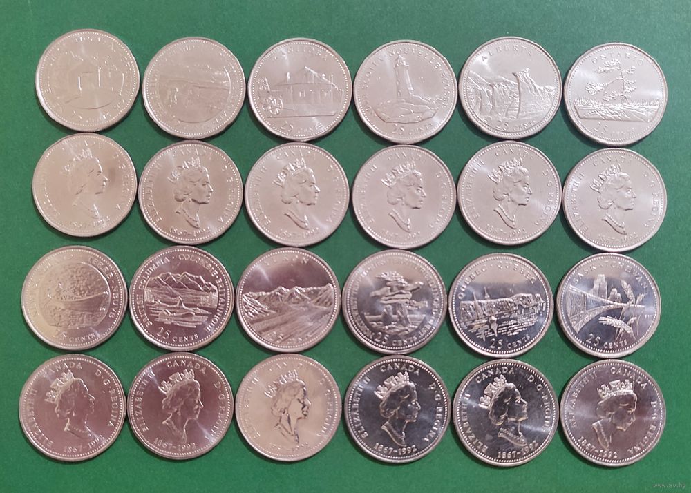 Набор монет Канады 25 центов 1992 год. 125 лет Конфедерации. Независимость. (12шт) UNC