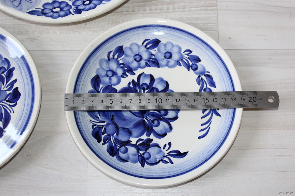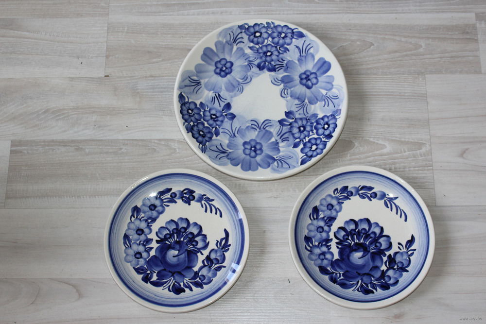 | Присутствуют микро царапинки, скольчики, диаметр большой тарелки 24 см., средних 19 см. | |