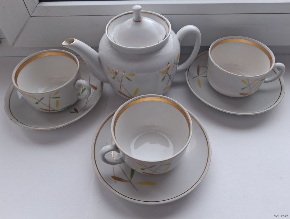 | Присуствует маленькая щербинка еа носике чайника.Ручная роспись | |