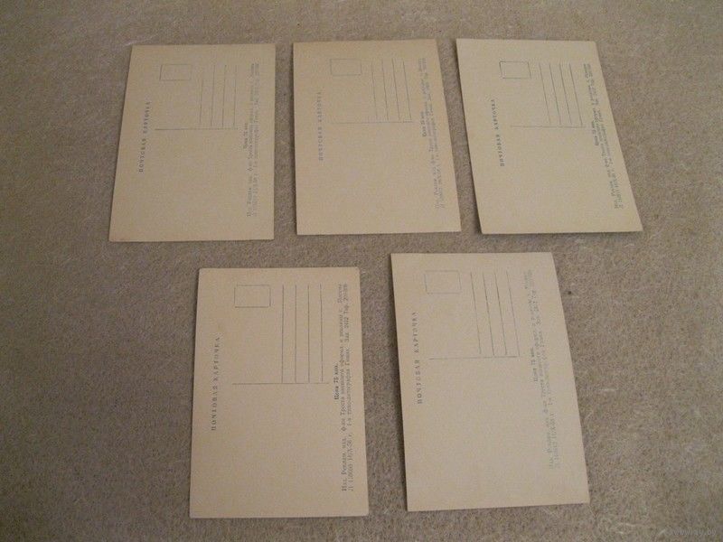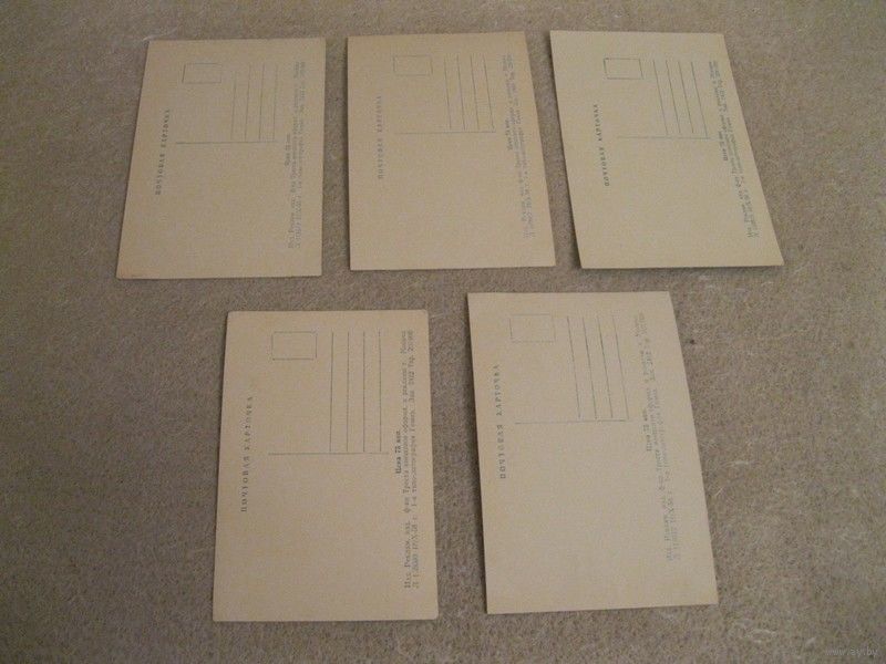 5 черно-белых открыток. Размеры открыток: 90 мм х 140 мм . Издание Рекламного издательства фабрики Треста внешнего оформления и рекламы г. Москвы, 1958 год.