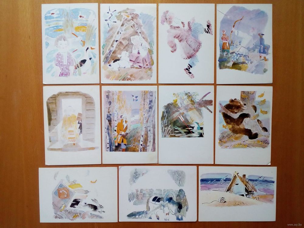 Набор открыток иллюстрации к сказкам СССР художник Ю.Д. Коровин, 11 шт