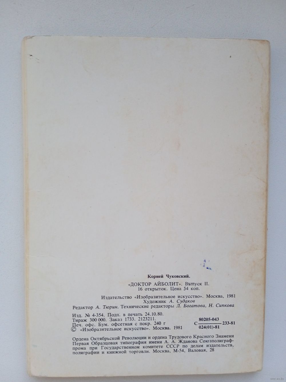 Набор открыток "Чуковский. Доктор Айболит" худ. А. Судаков. вып.2. 16 шт. 1981