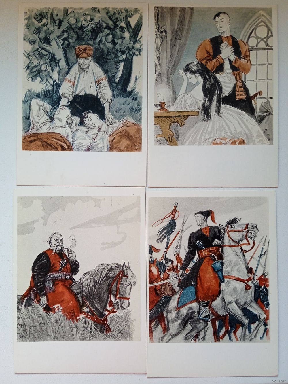Набор открыток "Д.Шмаринов. Иллюстрации к повести Гоголя "Тарас Бульба". 1973, 16 шт