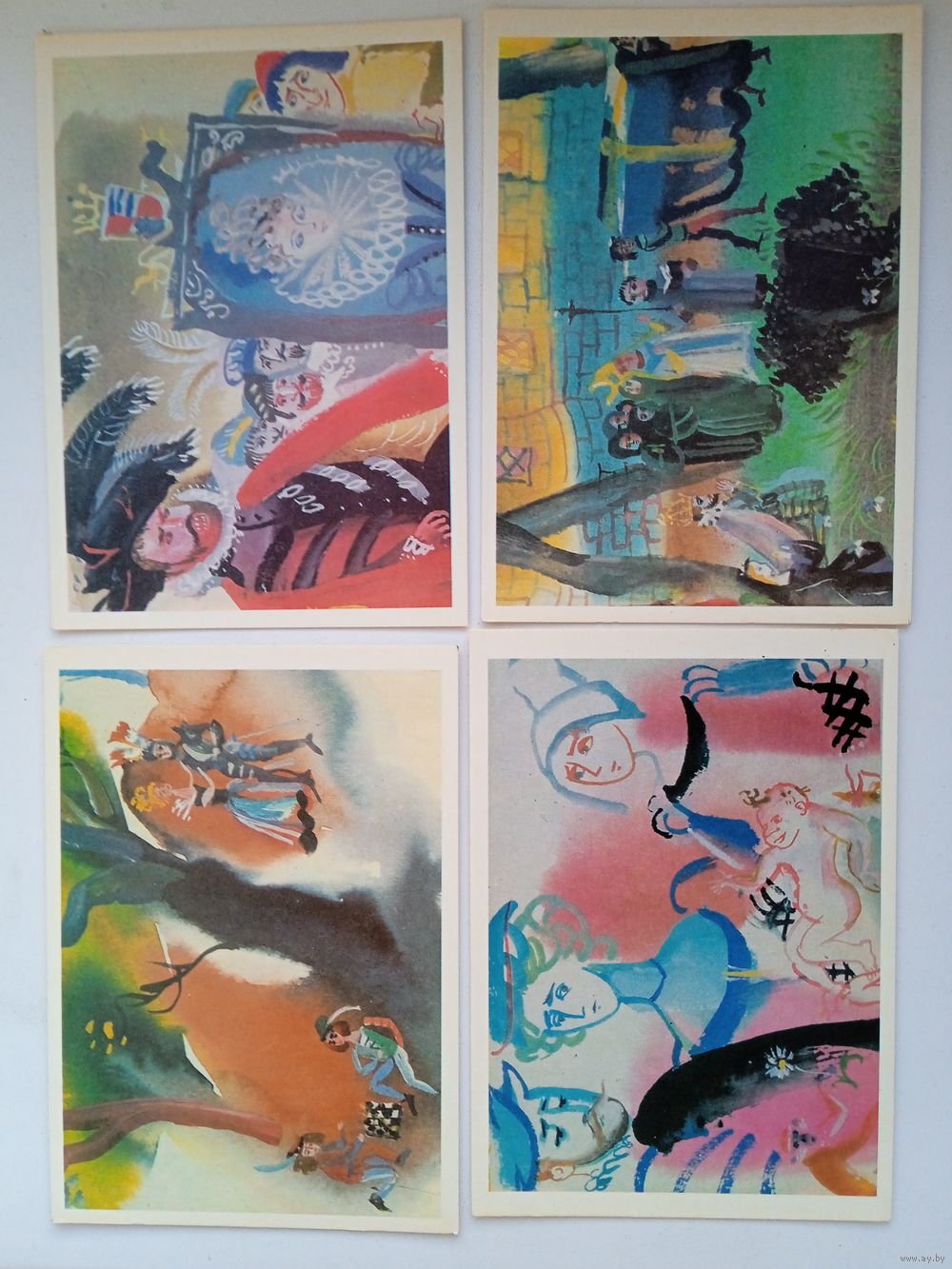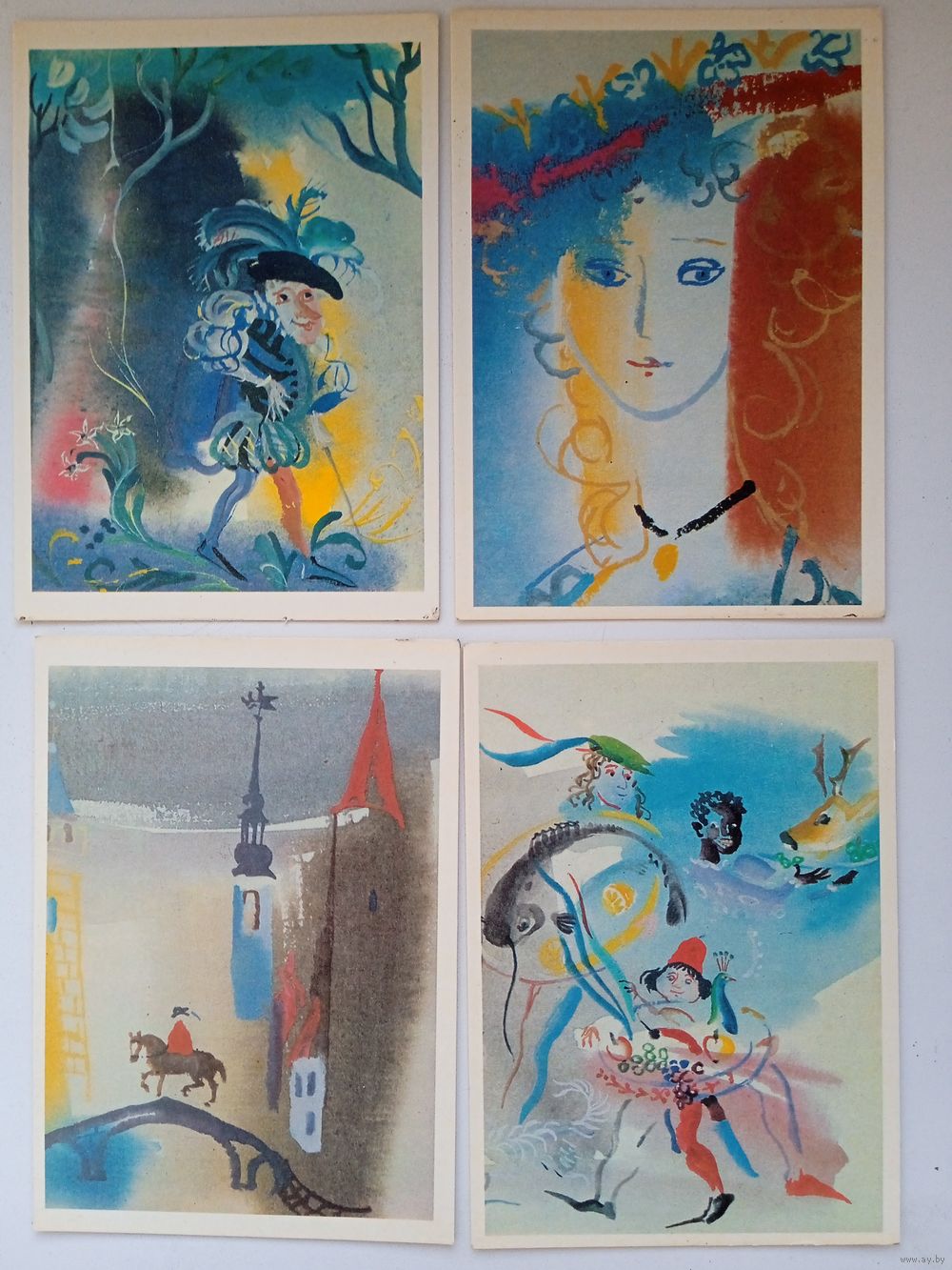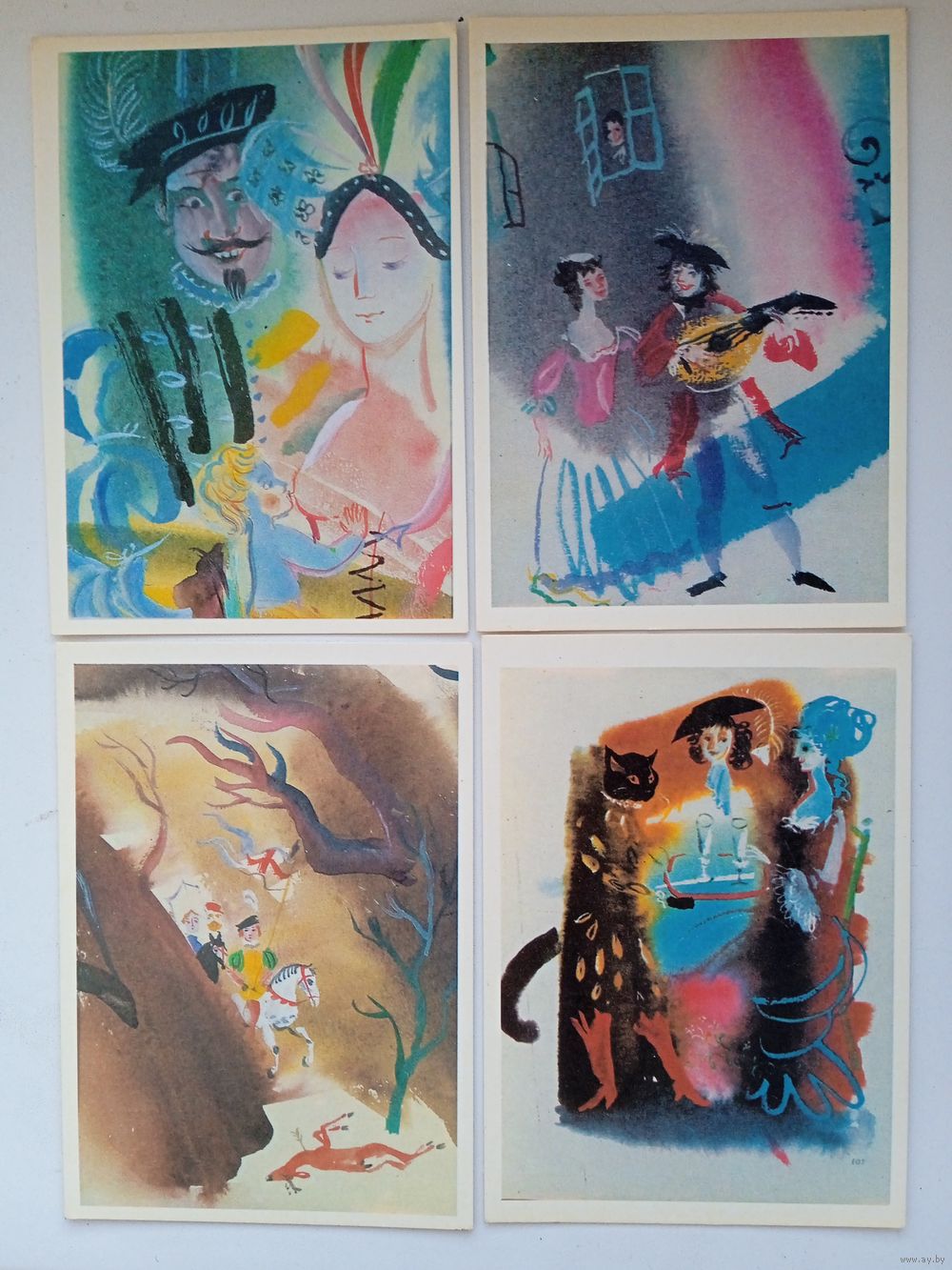 Набор открыток "Иллюстрации к сказкам Ш. Перро". художники А. и В. Трауготы. 16 шт. 1990