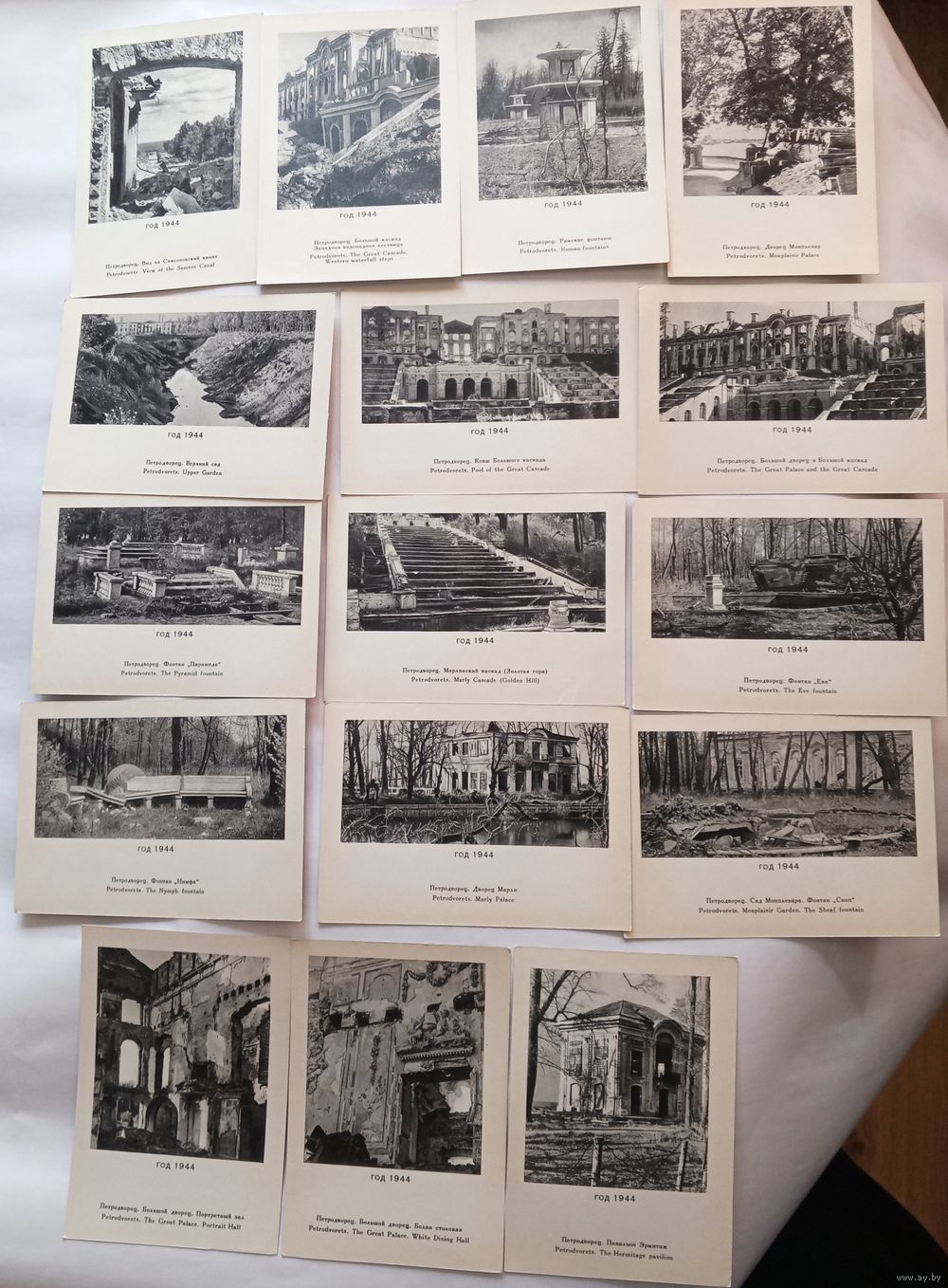 Набор открыток "Петродворец. Возрождённый из пепла" 1969 год. Полный комплект16 шт.