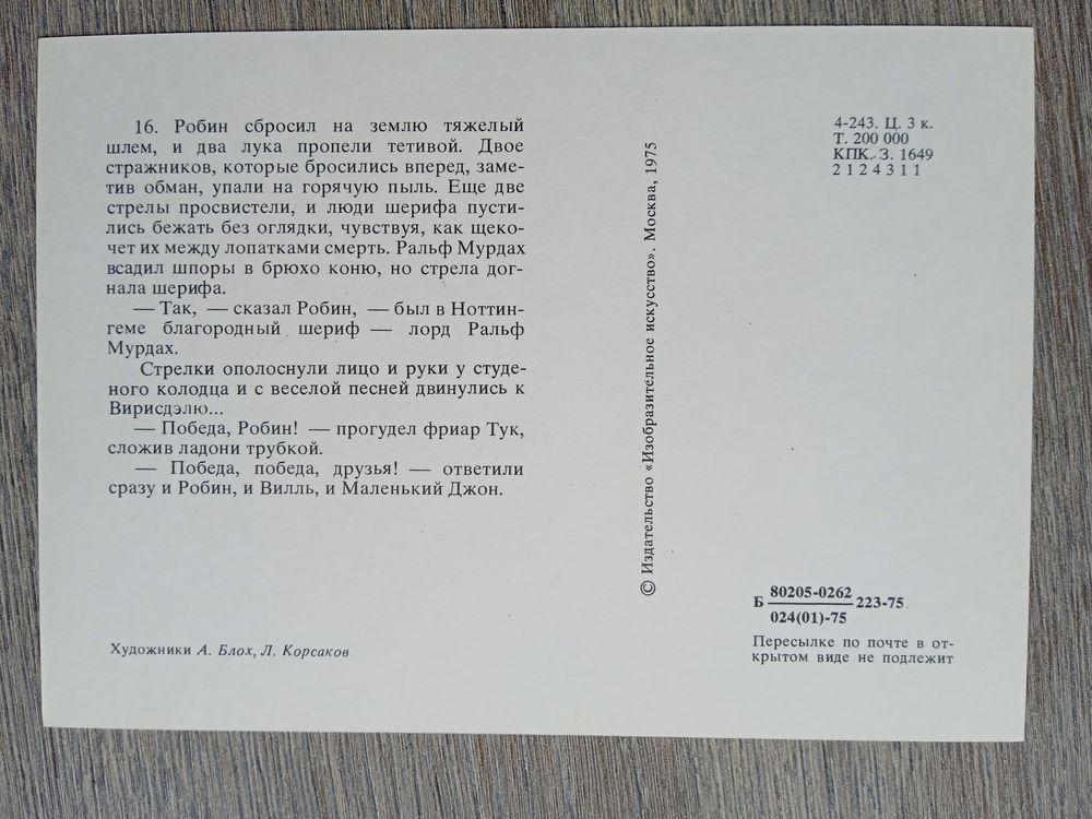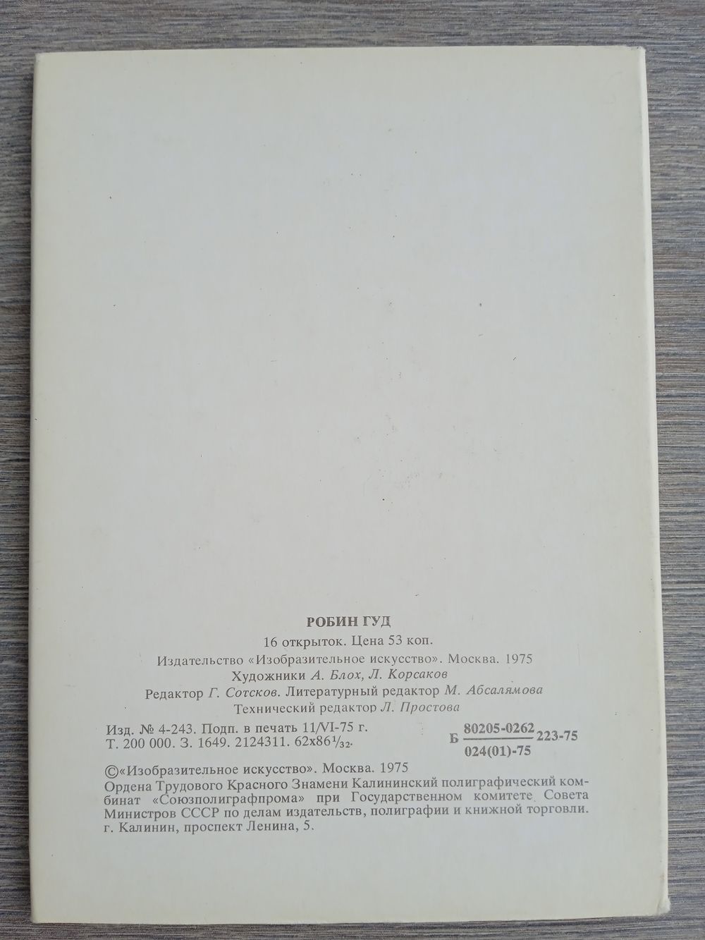 Набор открыток "Робин Гуд". худ. Блох, Корсаков. 1975, 16 шт