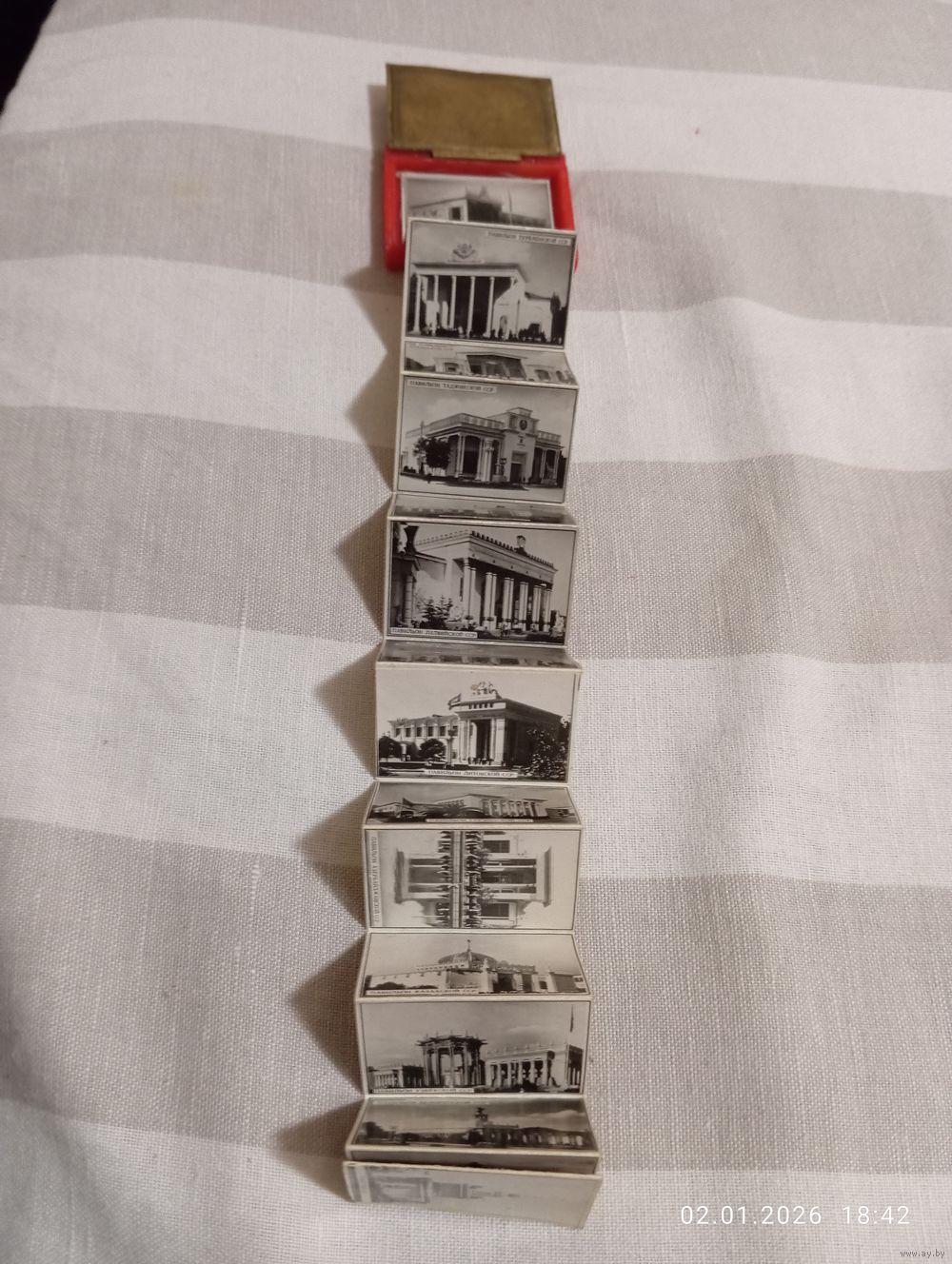 ВСХВ набор гармошка открыток сувенирный редкий 1954. В хорошем состоянии. 16 республик СССР включая Карело Финскую ССР. Малый формат 3*4,4 см. Возможность отправки Белпочтой, полная предоплата. Без торга