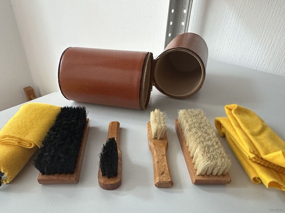 Походный набор. Винтаж. Англия. Следов использования практически нет. Кожа, дерево, ворс.