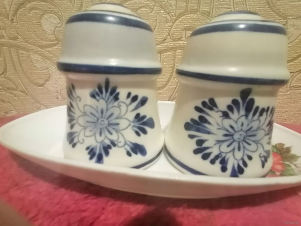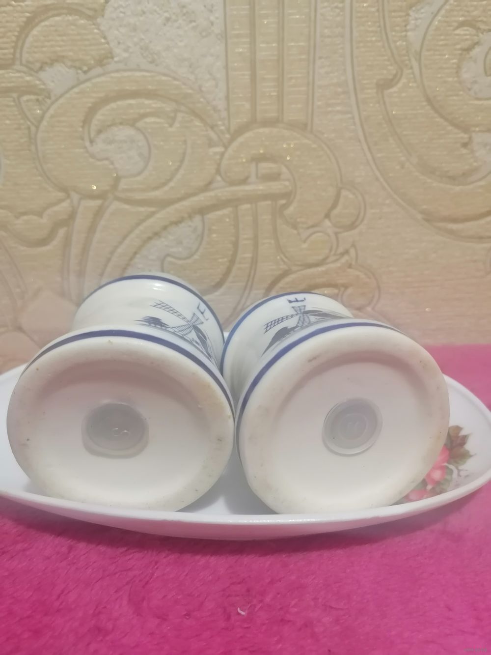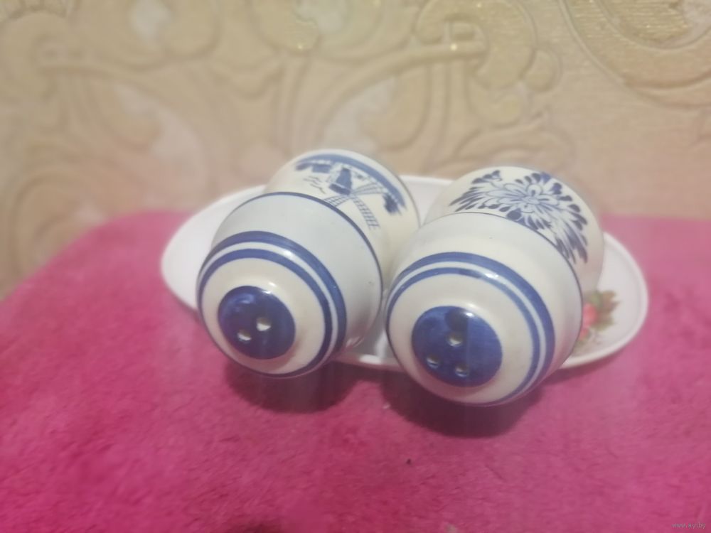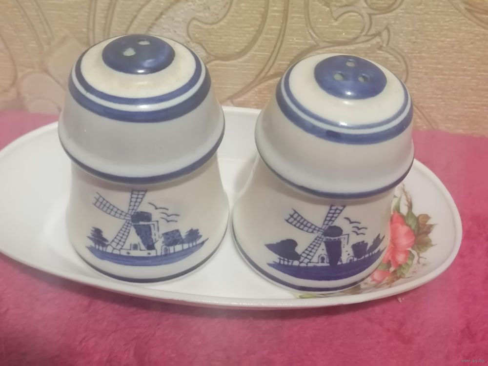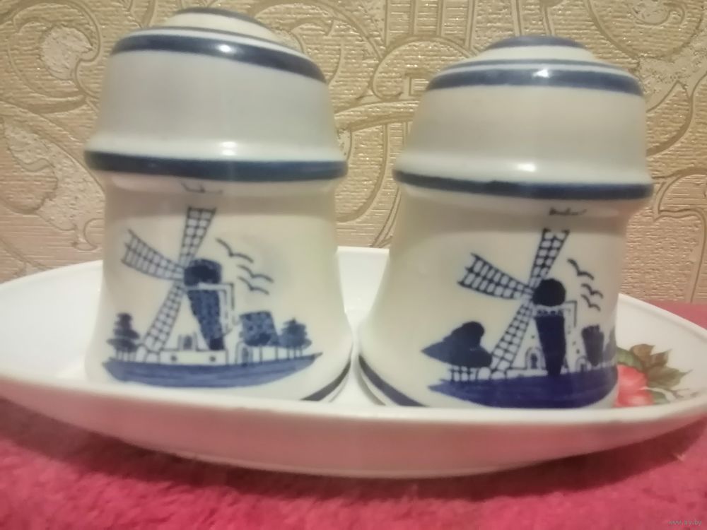 Голландский набор приправ-7,5х5,5см с подставкой-17см.Перечницы фарфор-эмаль,подставка пластик(личная)