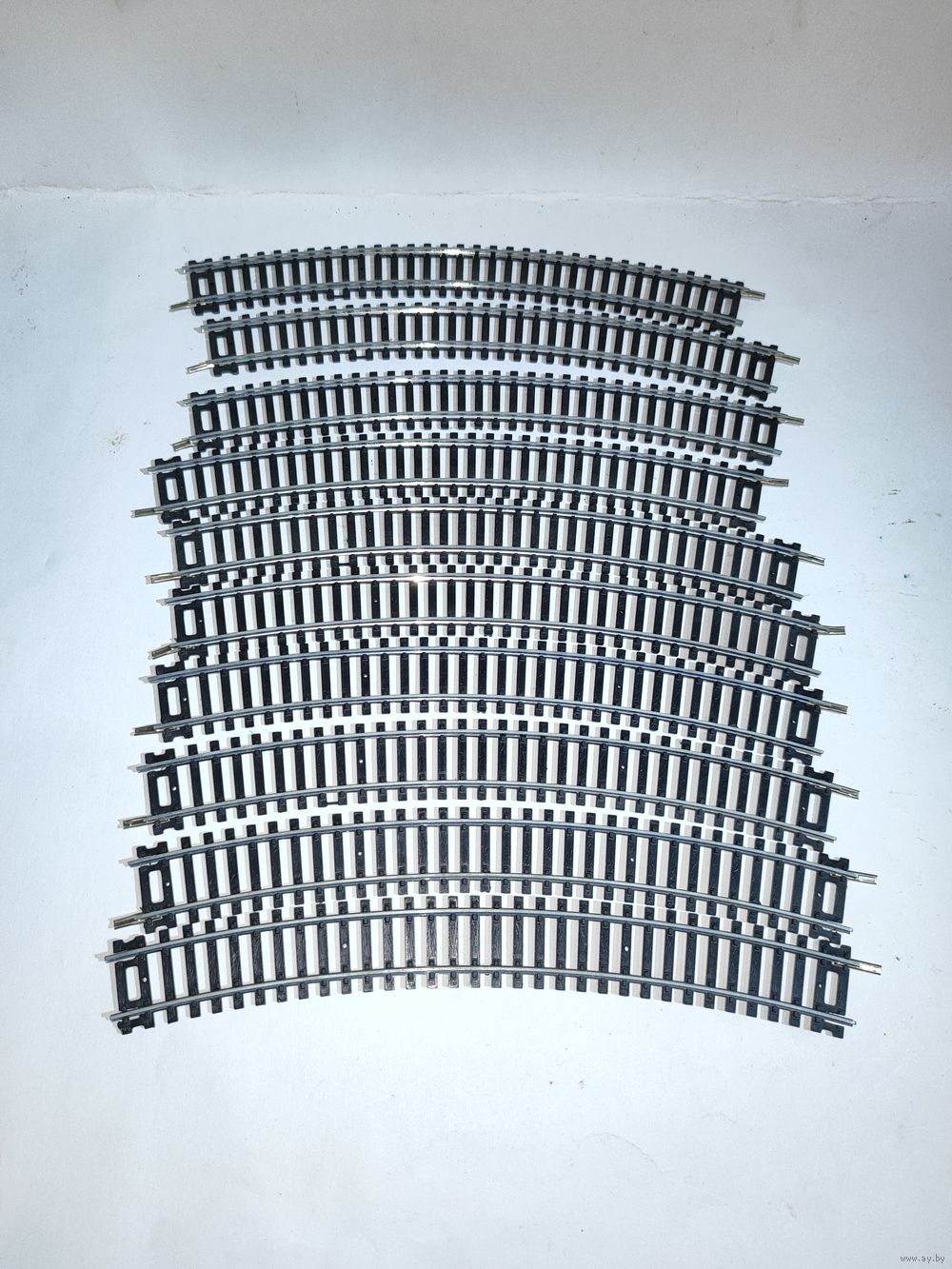 Ширина колеи 16,5 мм. 1-контакктная радиусная, 2-прямых,10 -радиусных. Состояние на фото(у одной радиусной нет одного соединительного разъёма).