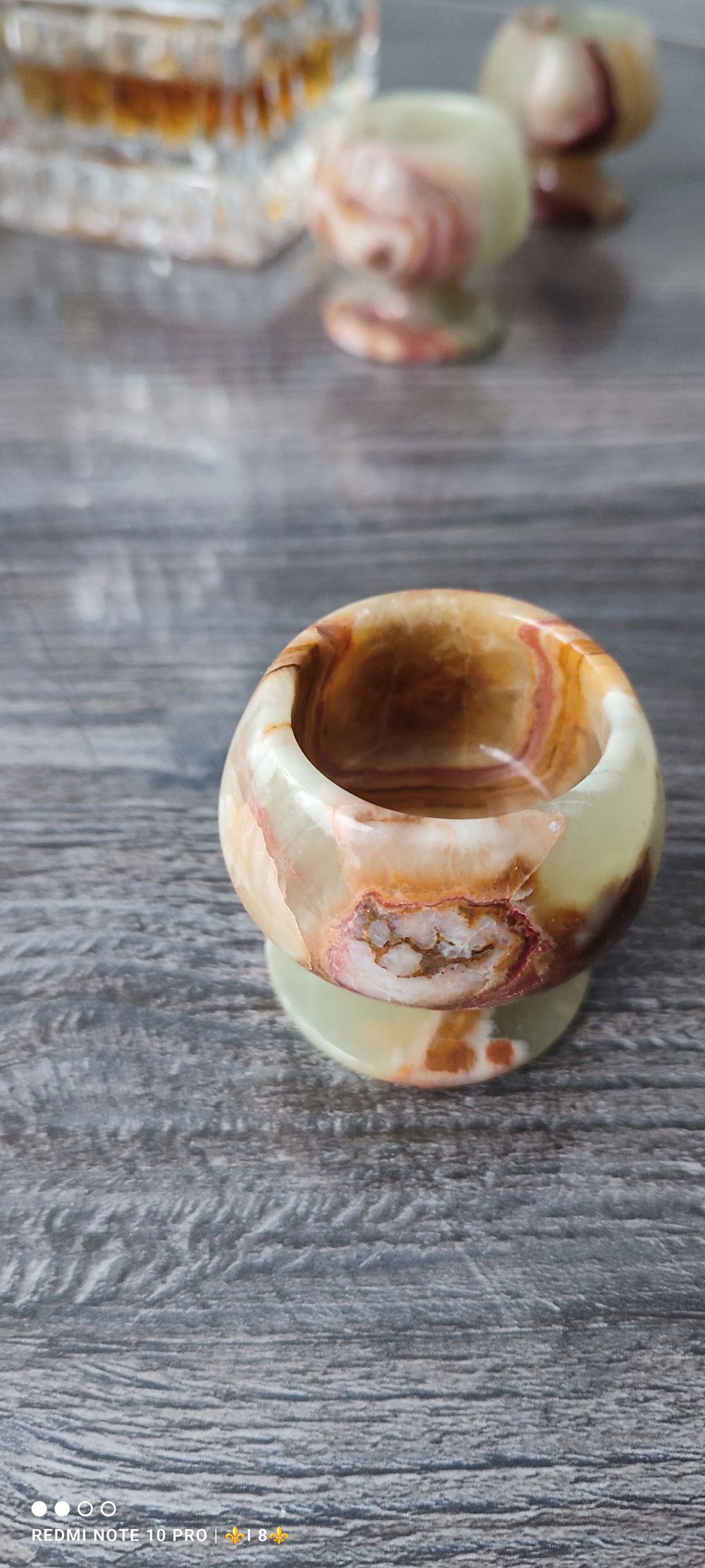 Набор рюмок из камня Оникс в оригинальной упаковке.Состояние отличное.Сделайте себе подарок к Новому Году,вы этого заслуживаете!