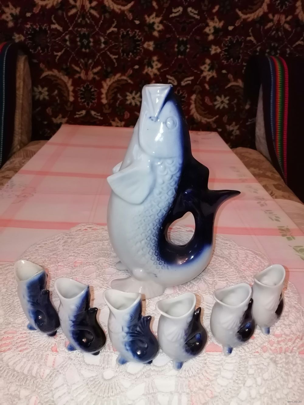 Винтажный набор рюмочек с графином в виде рыбки из СССР, рыболовная тема, принесёт много положительных эмоций человеку любящему рыбалку...