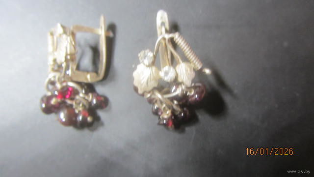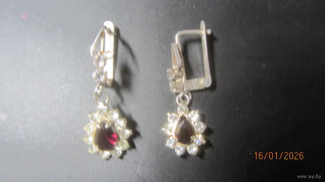 2) фото 2 - серьги с камешками,,гранат,, Вес 7.38 г. цена 70.0 руб.