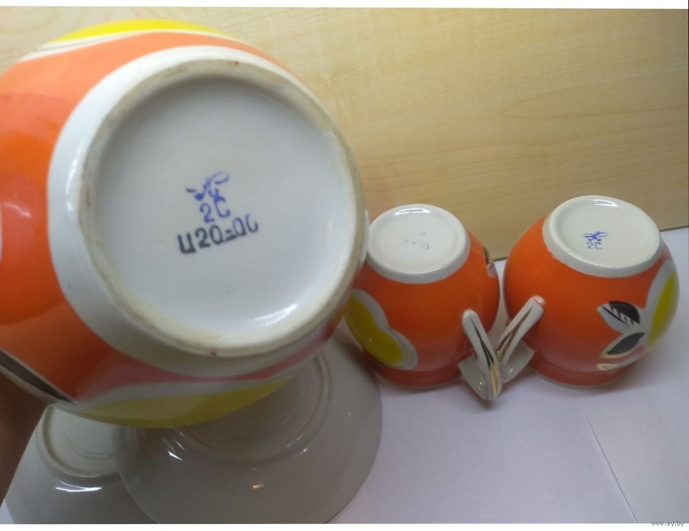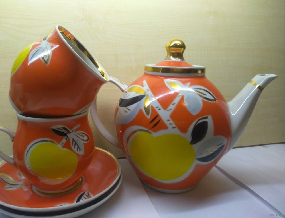 Заварочный чайник с крышкой+2 чашки с блюдцами. Полный комплект.
