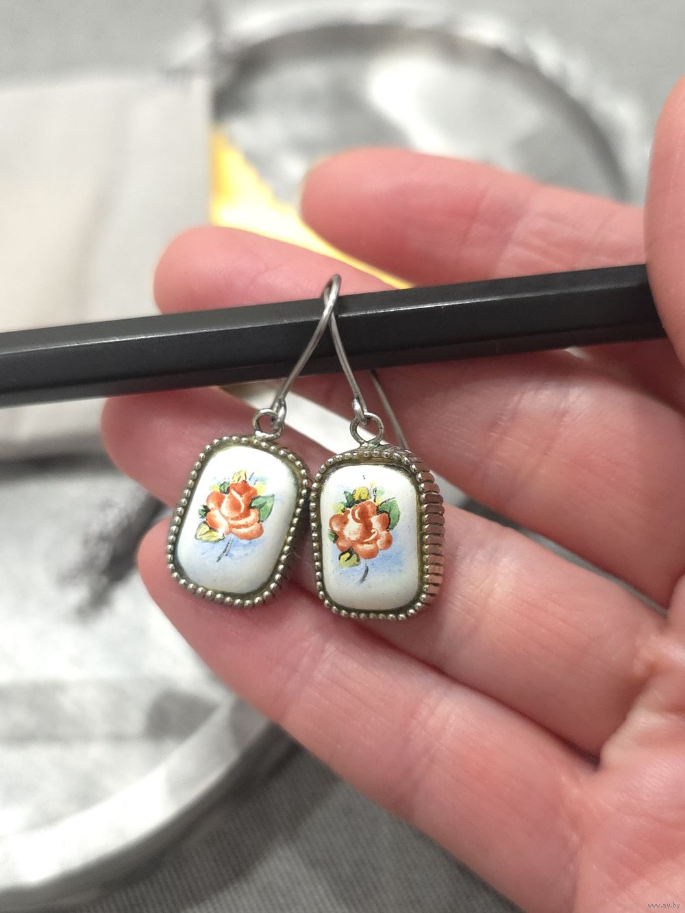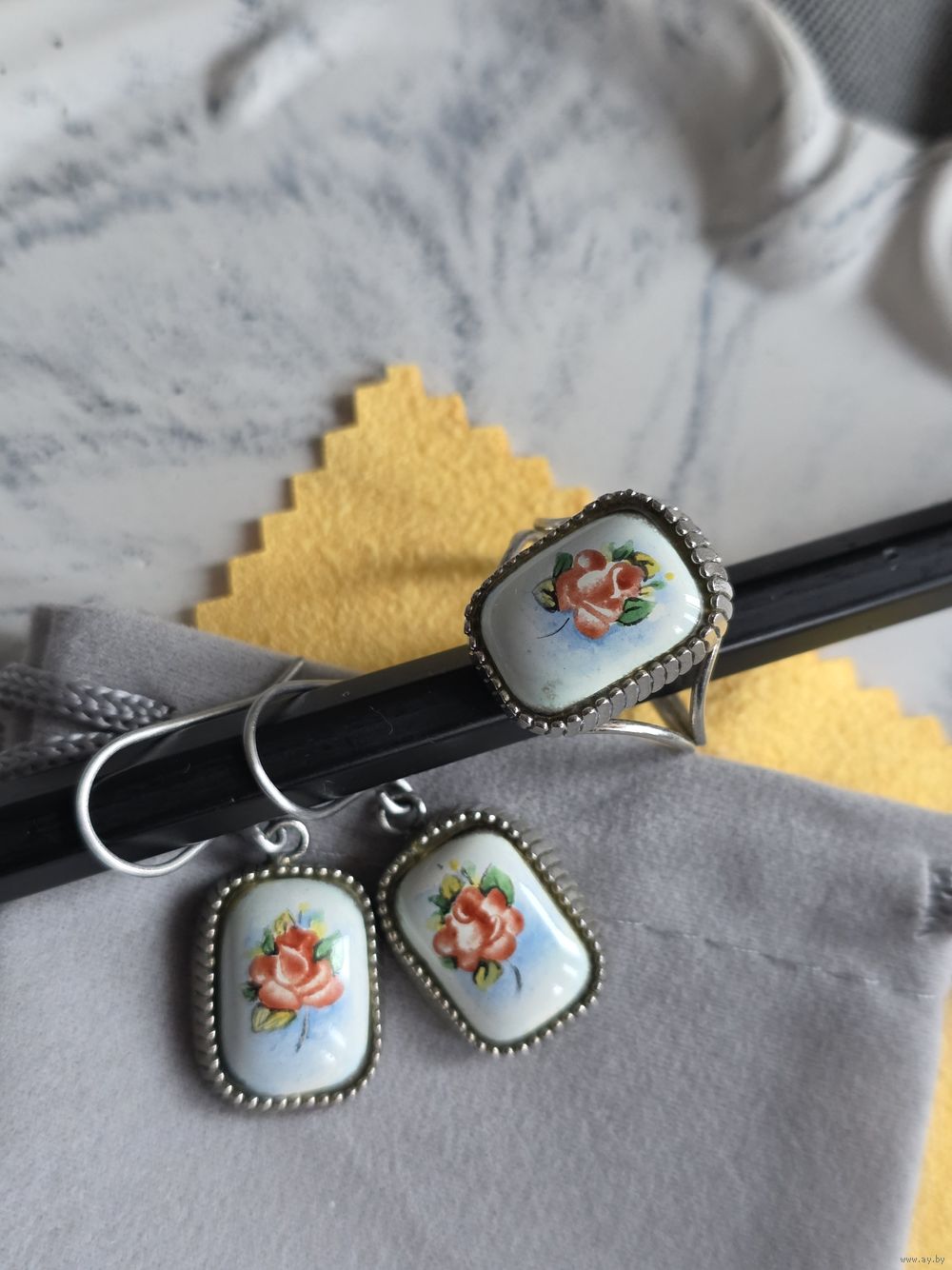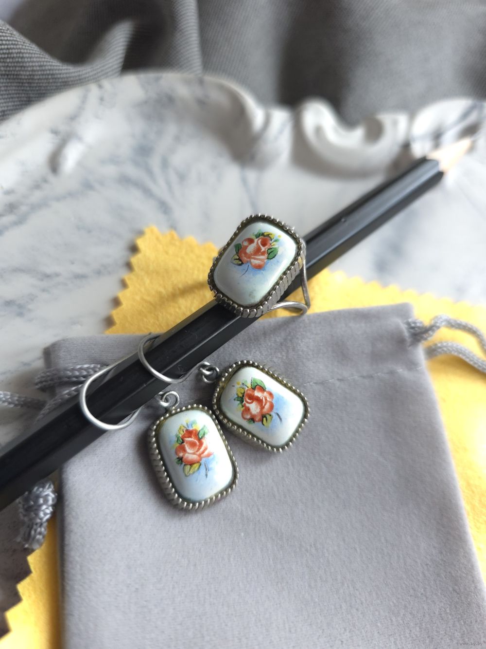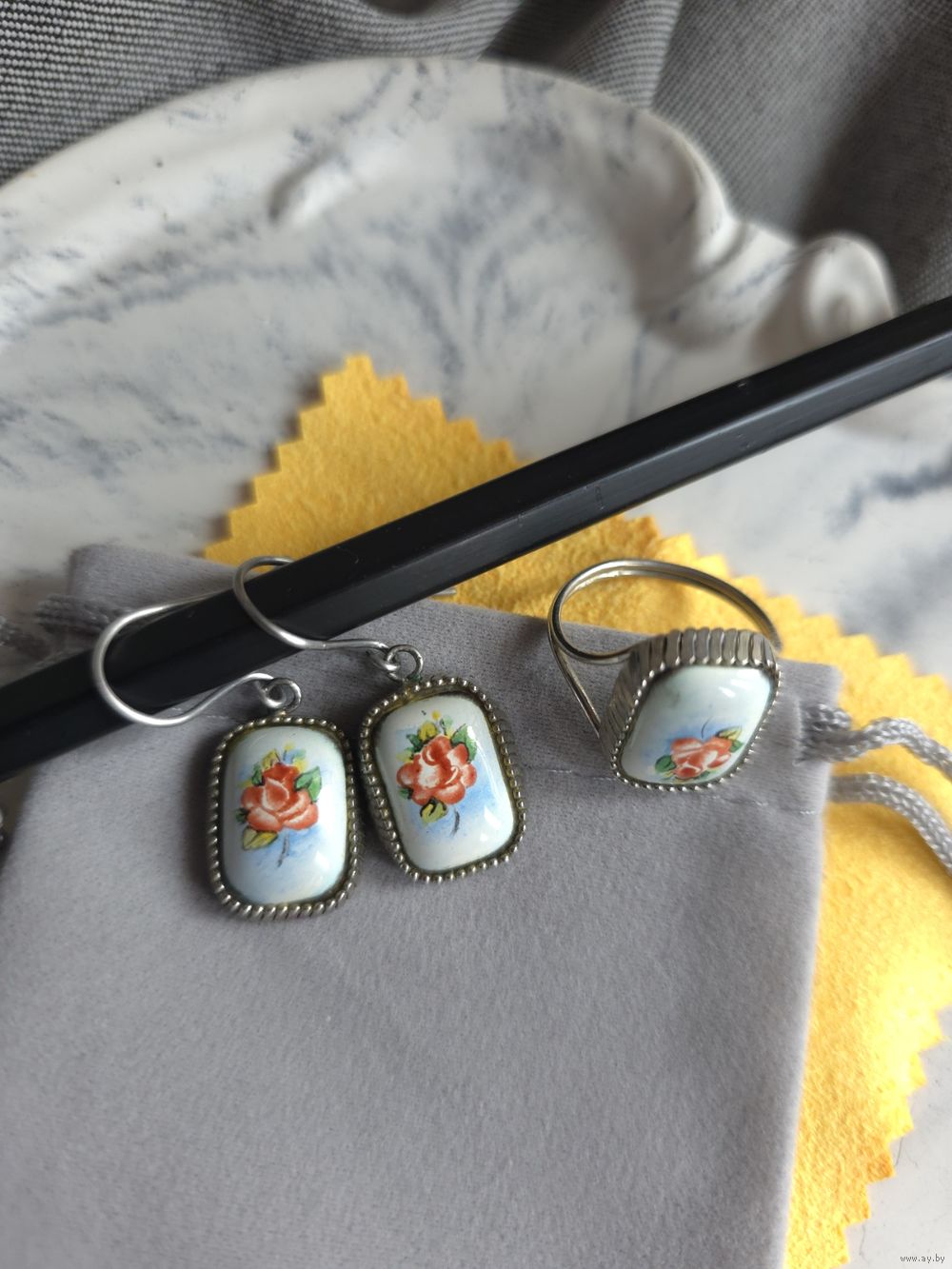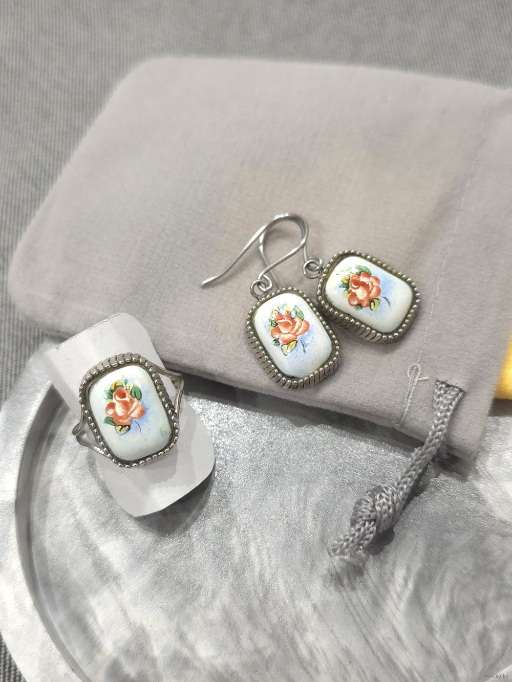 Серьги и кольцо р. 19, ростовская финифть.