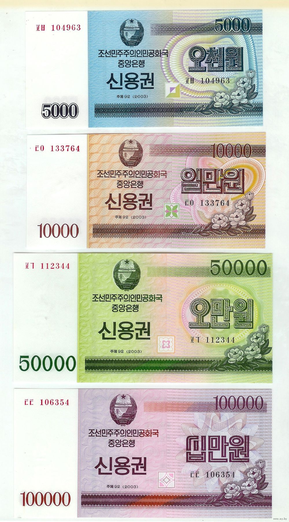 Набор Северная Корея (КНДР) 5000/10000/50000/100000 вон 2003 год, UNC.