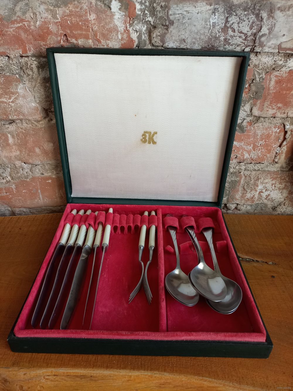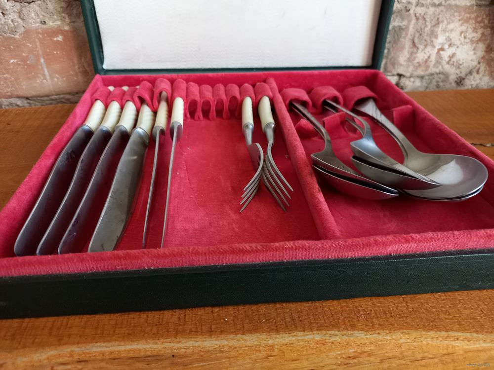 Набор столовых приборов, 14 предметов в фирменной коробке, нержавейка. Павловский завод им. Кирова, 70е годы СССР.