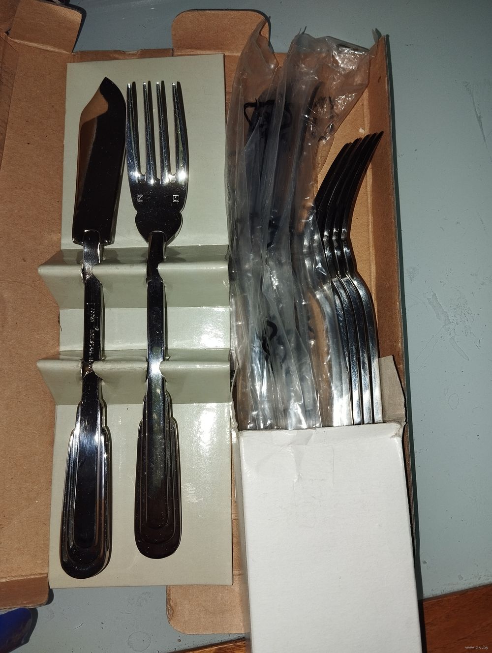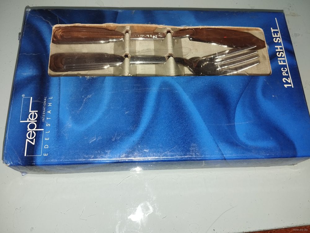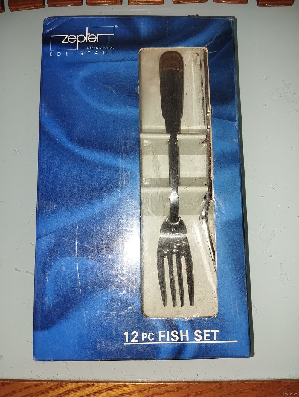 Набор столовых приборов для рыбы ЦЕПТЕР . В набор входит- 6 рыбных ножей, 6 рыбных вилок. Материал нержавеющая сталь Можно мыть в посудомоечной машине. Толщина4 мм. Упаковка -коробка. Производство - Италия.