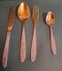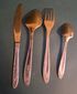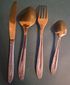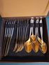 Набор столовой посуды, нержавейка, позолота. 5 - ножей, 6 вилок, 6 столовых ложек, 5 чайных ложек.