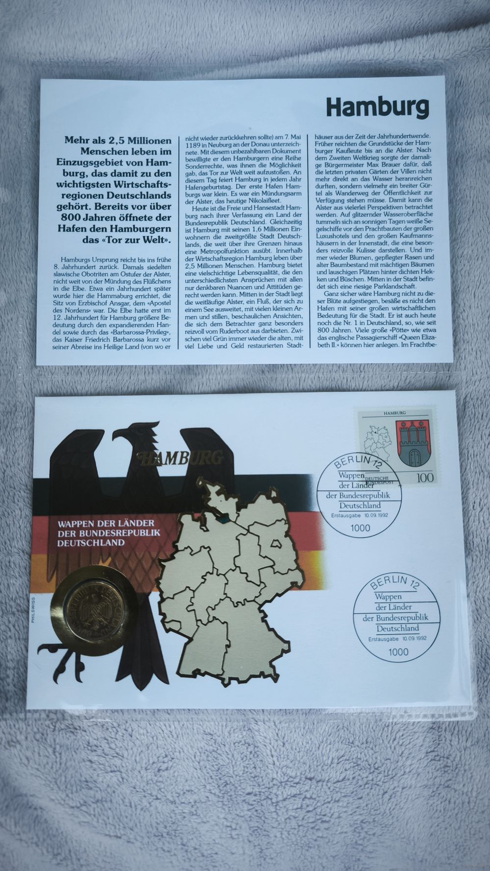 «Гербовые земли Федеративной Республики Германия» (Wappen der Länder der Bundesrepublik Deutschland), посвященный свободному и ганзейскому городу Гамбург.