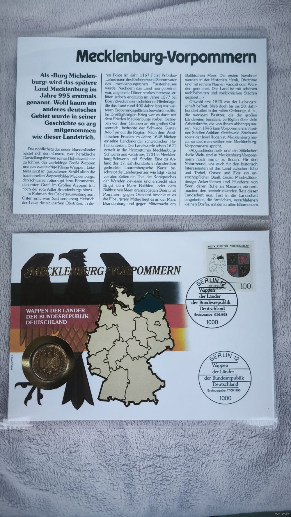 «Гербовые земли Федеративной Республики Германия» (Wappen der Länder der Bundesrepublik Deutschland), посвященный федеральной земле Мекленбург-Передняя Померания.