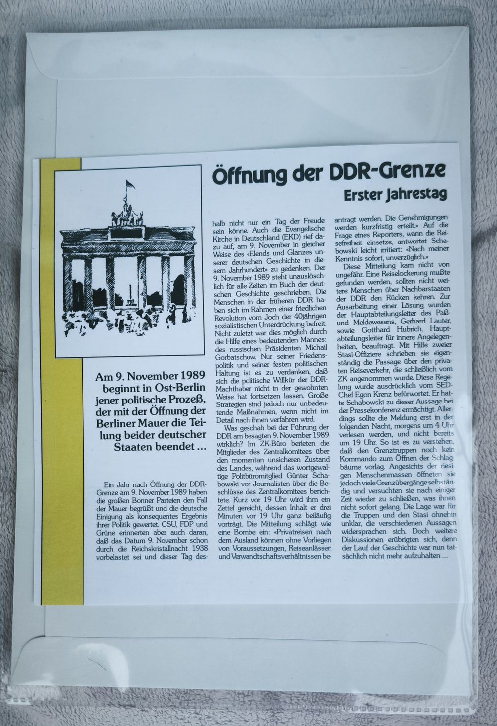 Набор «Открытие границы ГДР — Первая годовщина» (Öffnung der DDR-Grenze), посвященный первой годовщине падения Берлинской стены и объединения Германии.