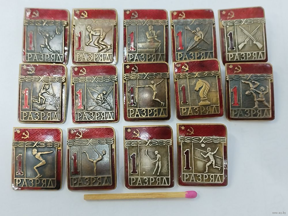 Набор знаков. 1 разряд по видам спорта. накладные, тяжёлые. цена за 1 шт.