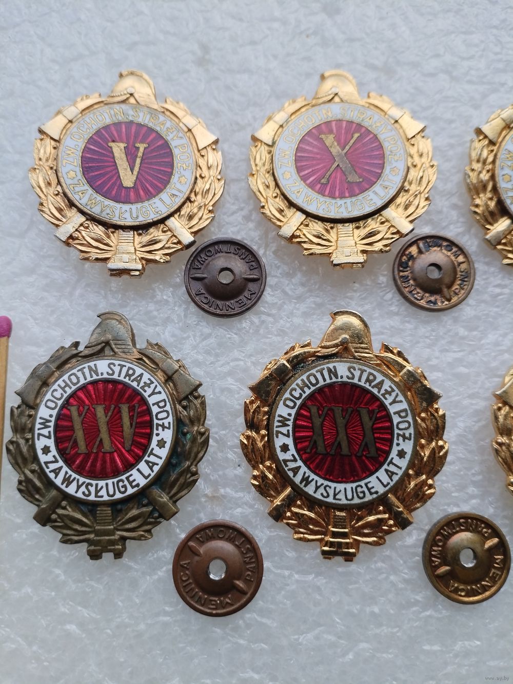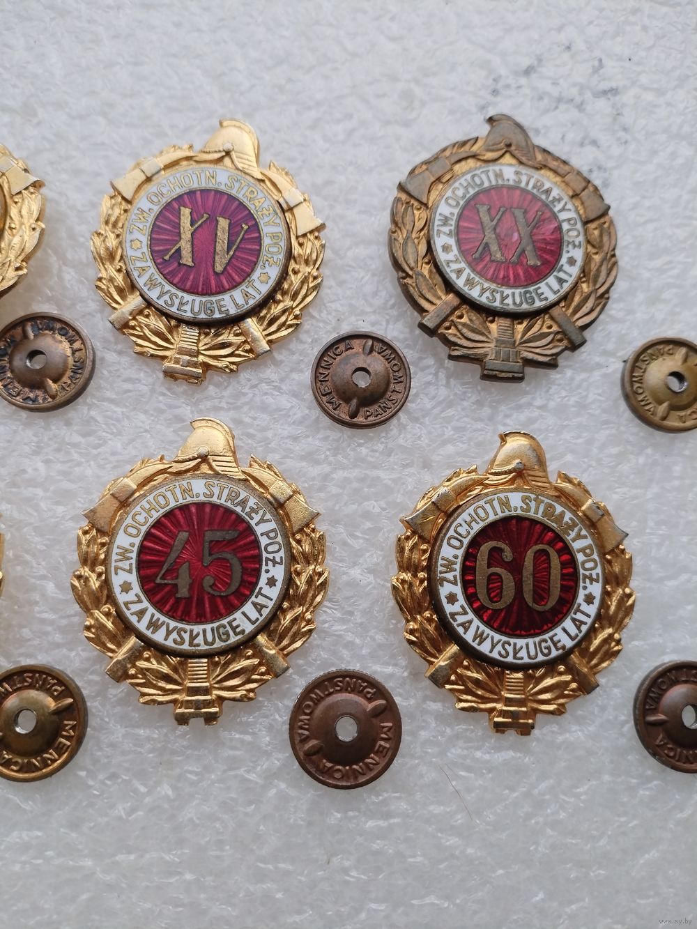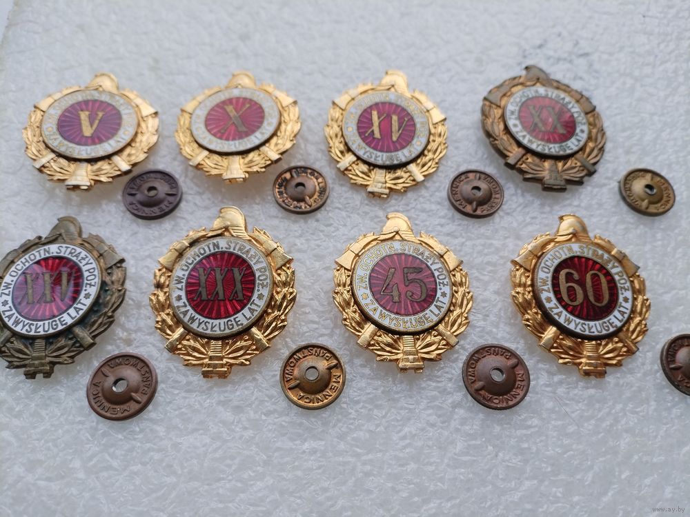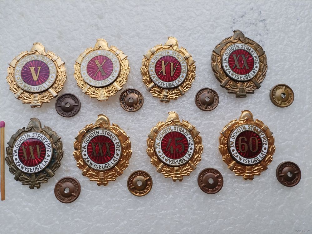 Набор знаков ПНР. Пожарник, за выслугу 5, 10, 15, 20, 25, 30, 45, 60 лет. тяжёлые, винты