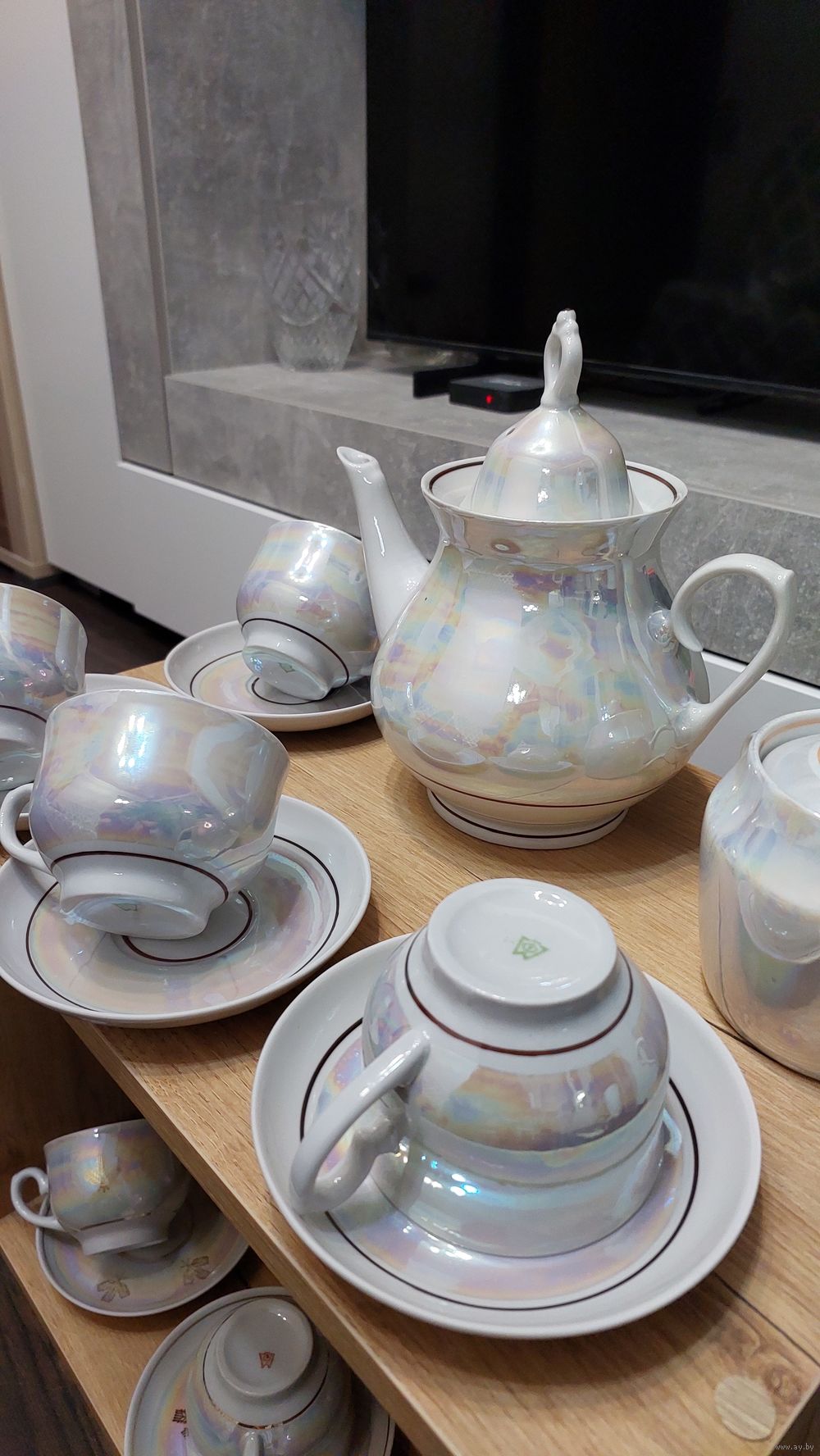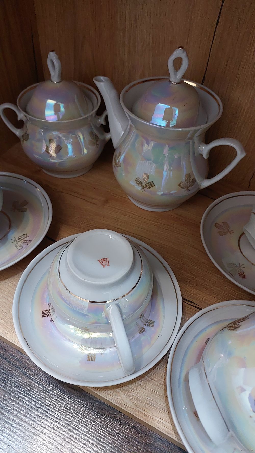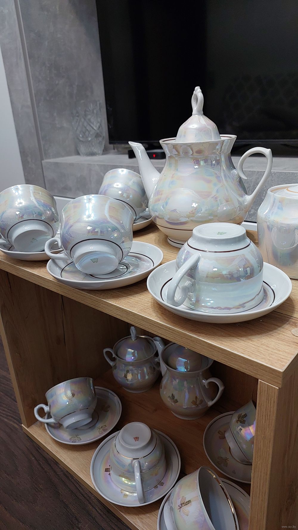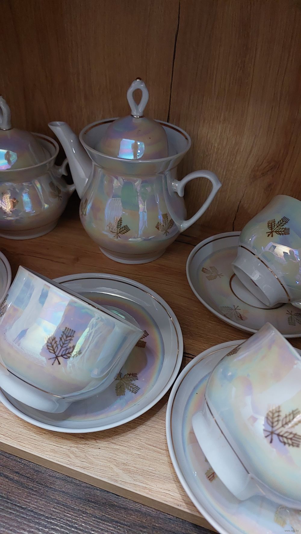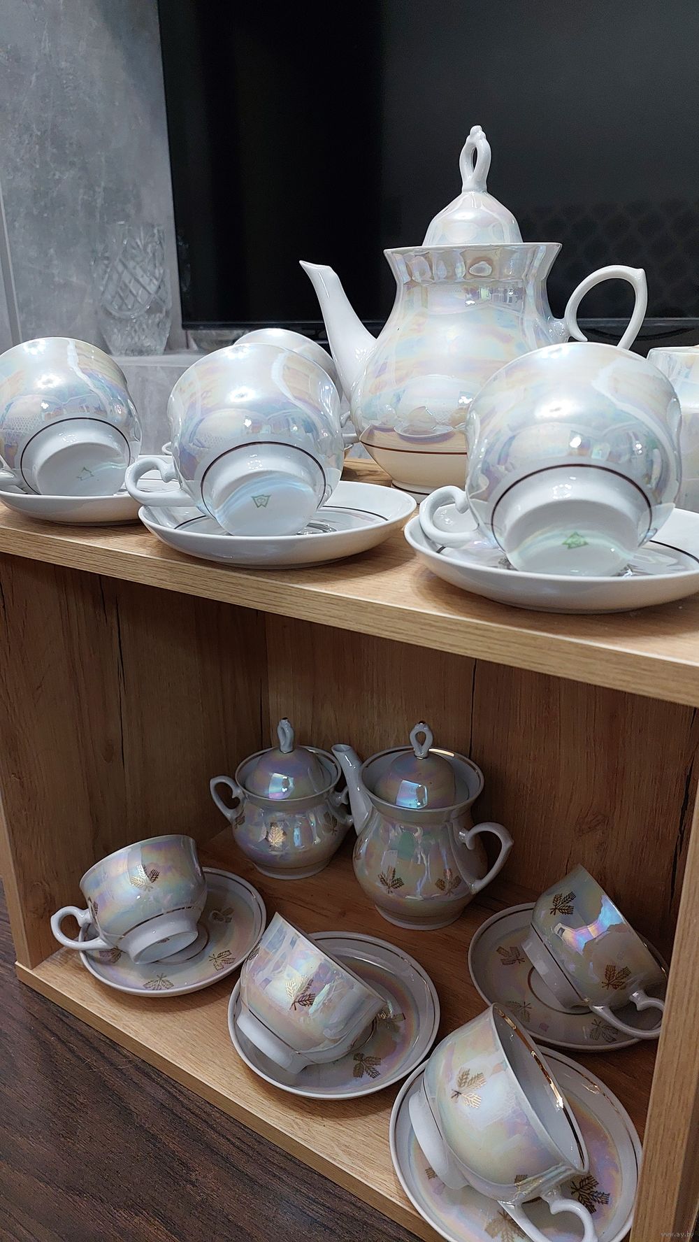 1.Набор белый перламутр 4 пары, чайник, саханица