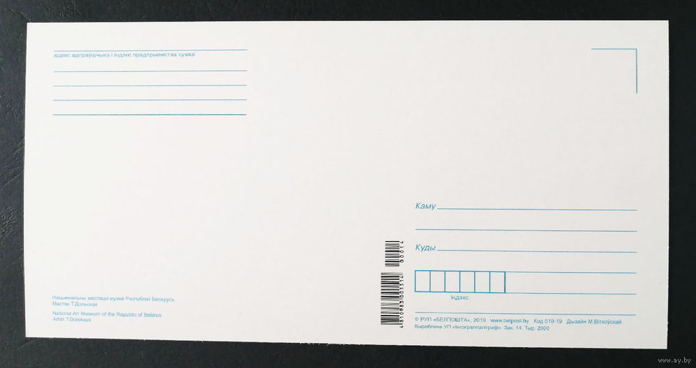 Оплата: наличные, P2P перевод на банковскую карту. Стоимость почтового отправления по РБ весом до 100 гр., обычный конверт - 4 руб. 50 коп., пластиковый конверт или коробка Белпочта, весом до 1 кг. - 6 руб. Оформление - "До востребования"