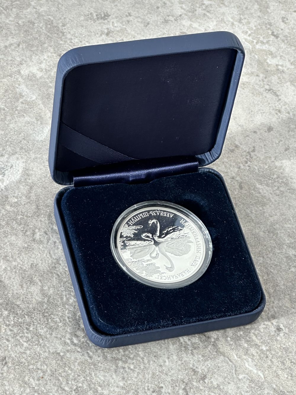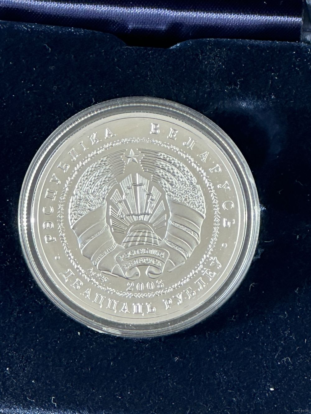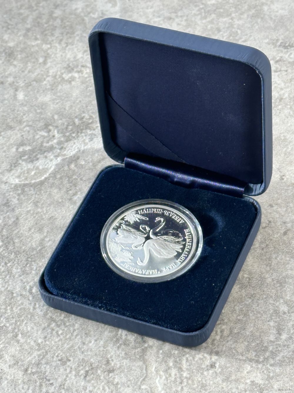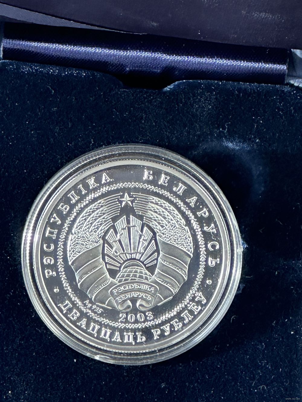 в круге, обрамленном геометрическим орнаментом, – рельефное изображение Государственного герба Республики Беларусь, под ним указан год чеканки, для серебряной и золотой – проба сплава; по кругу – надписи: в верхней части – "РЭСПУБЛIКА БЕЛАРУСЬ", в нижней – "ПЯЦЬДЗЕСЯТ РУБЛЁЎ" на золотой, "ДВАЦЦАЦЬ РУБЛЁЎ" на серебряной