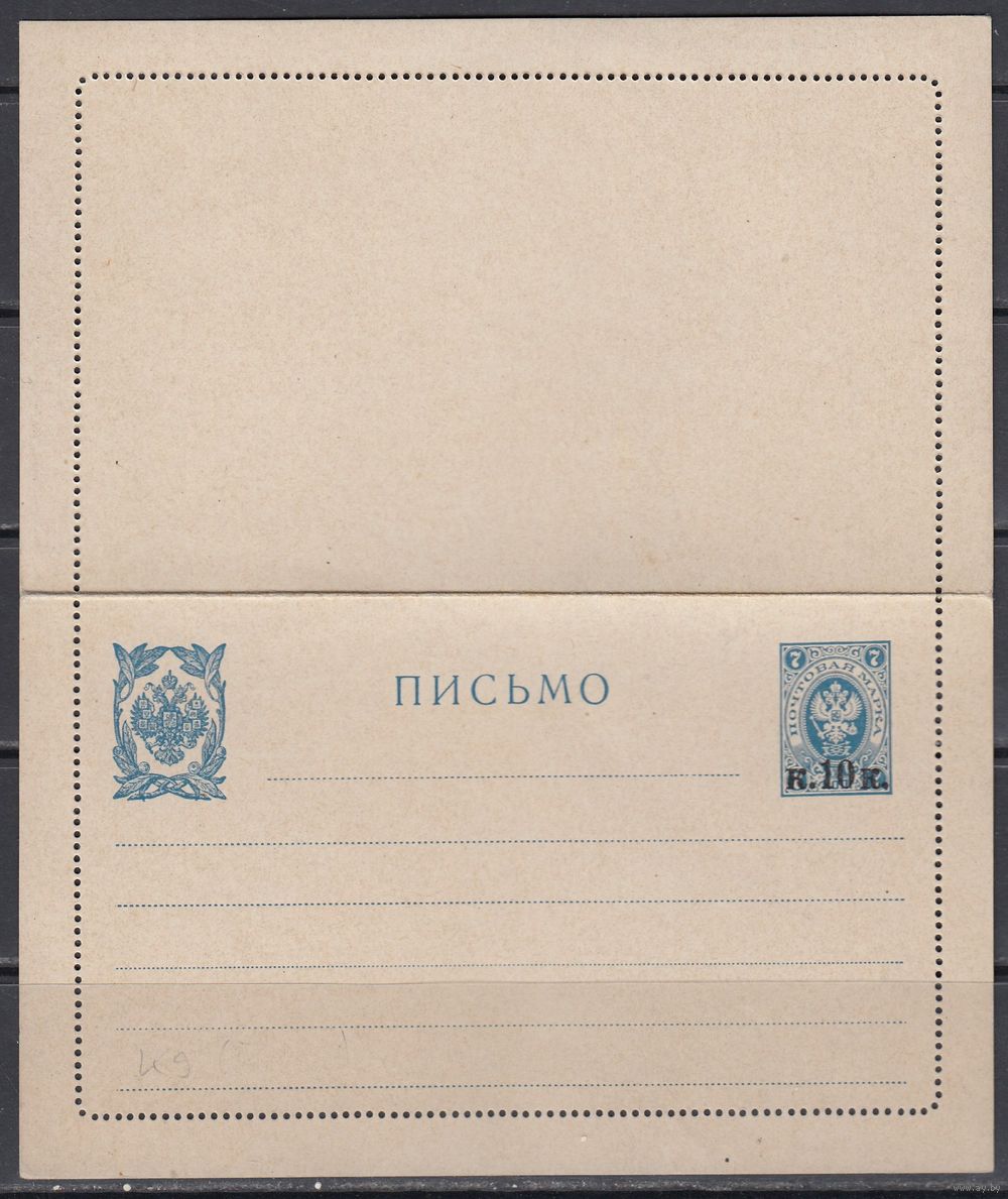 Надпечатка Герб 1916 Российская Империя Россия 8 Выпуск Секретка Закрытое Письмо 1 шт