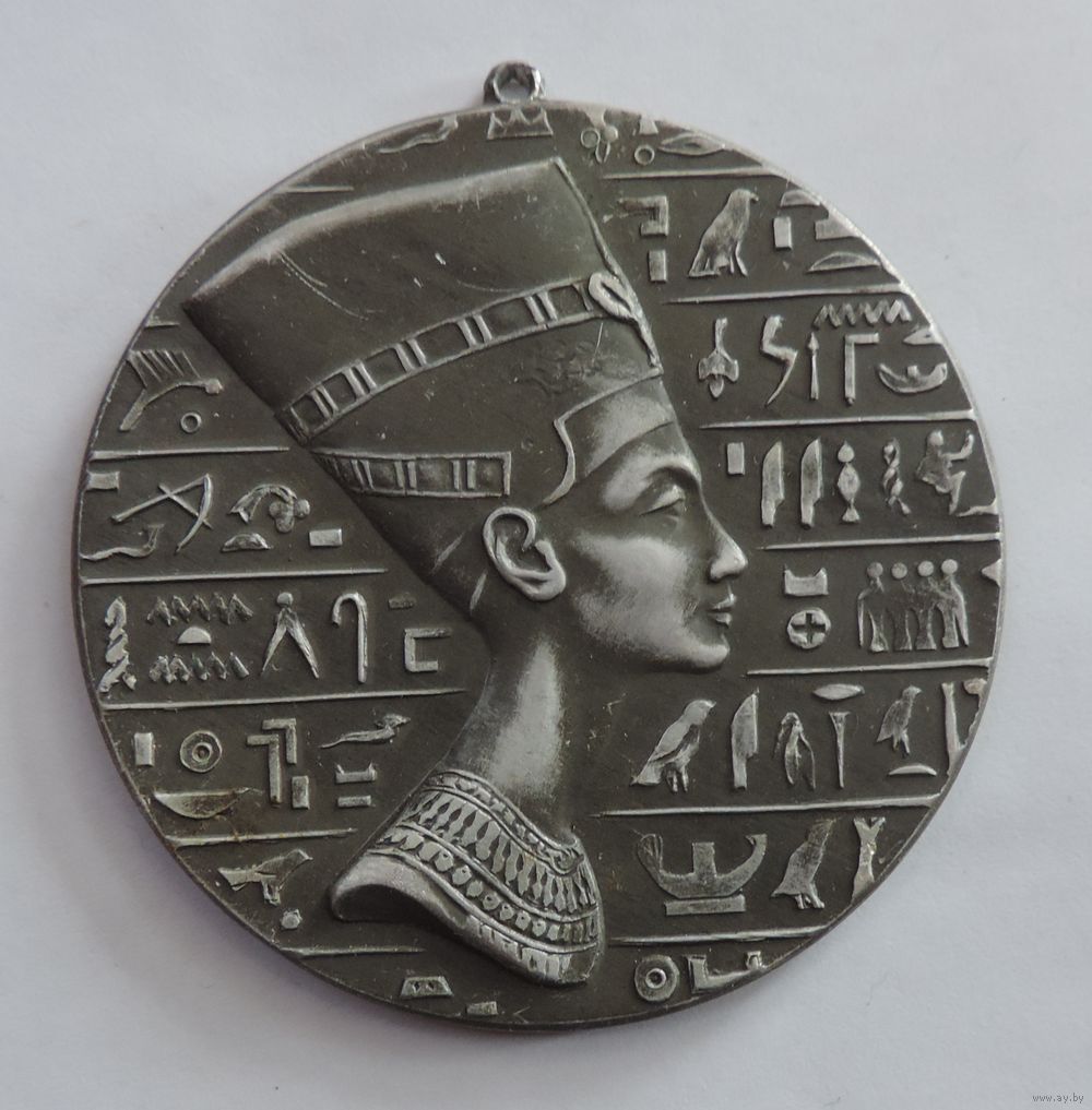 Нагрудный медальон с царицей Египетской". Диаметр 7.3 см. Алюминий.
