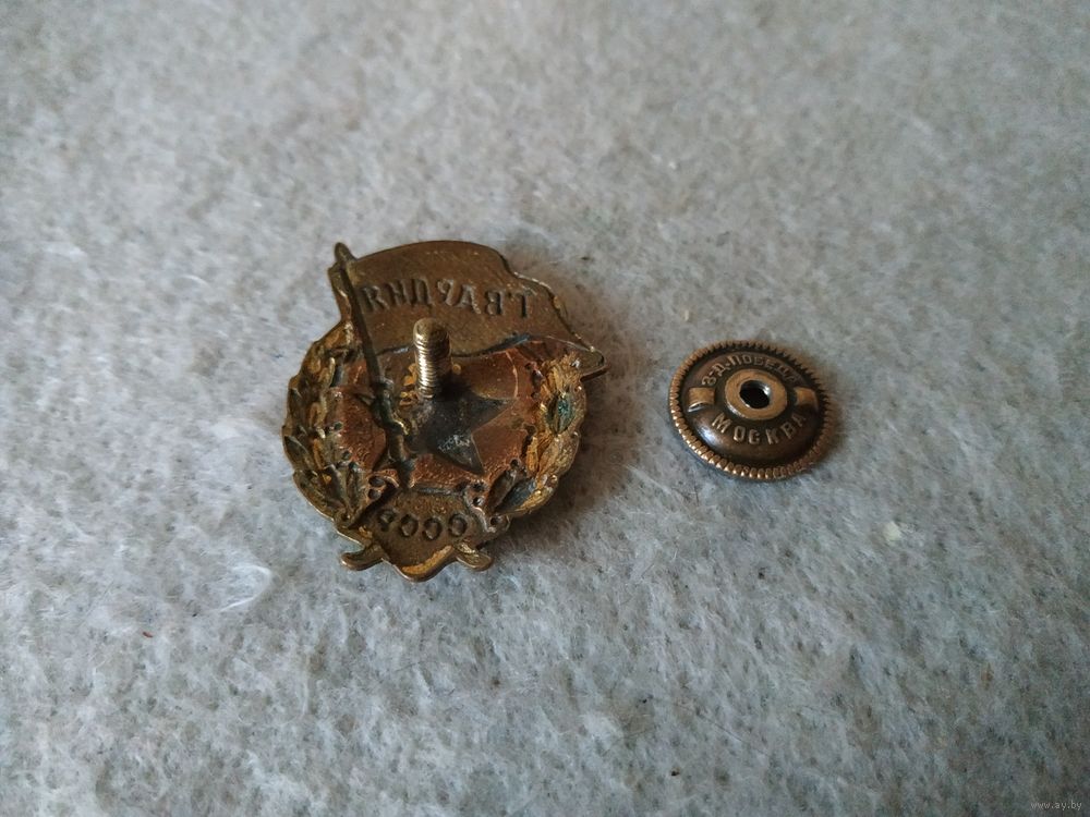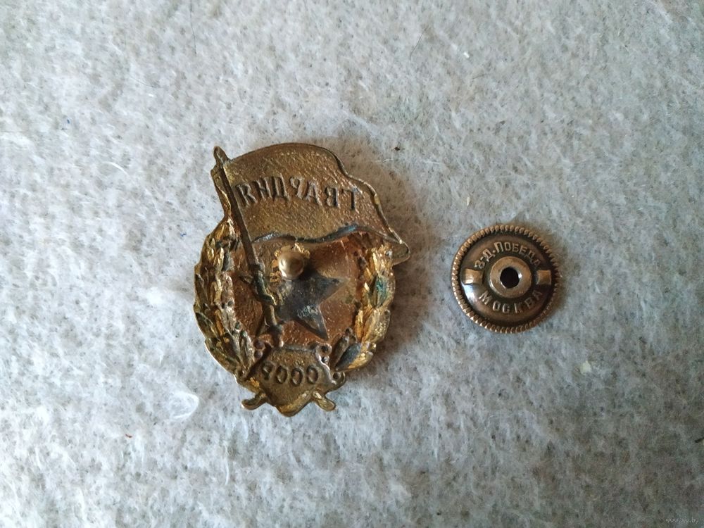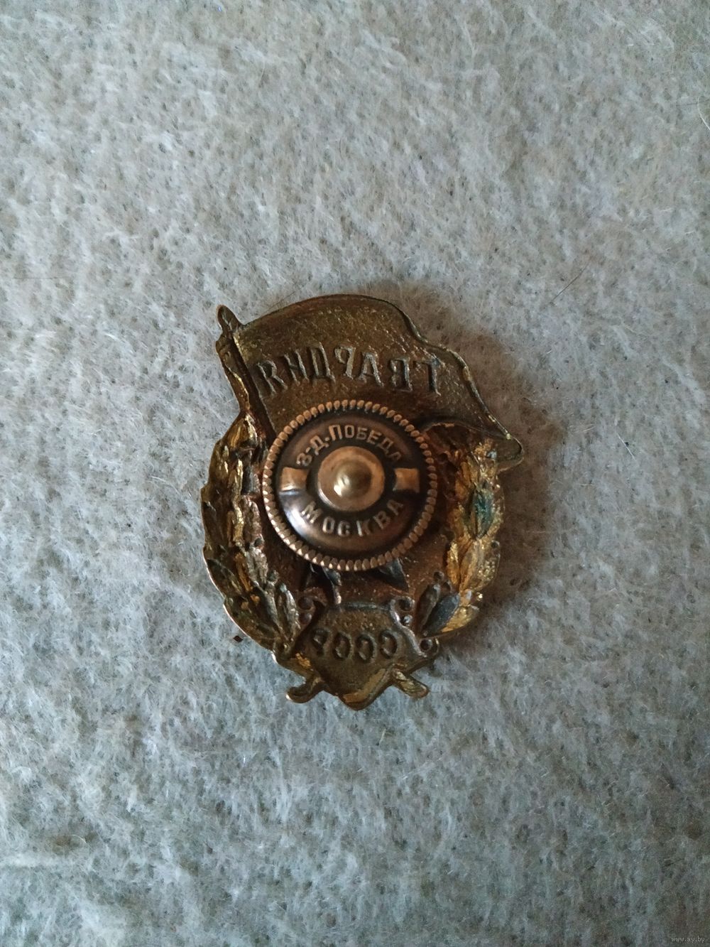 Красивый тяжёлый латунный знак в позолоте с эмалями.