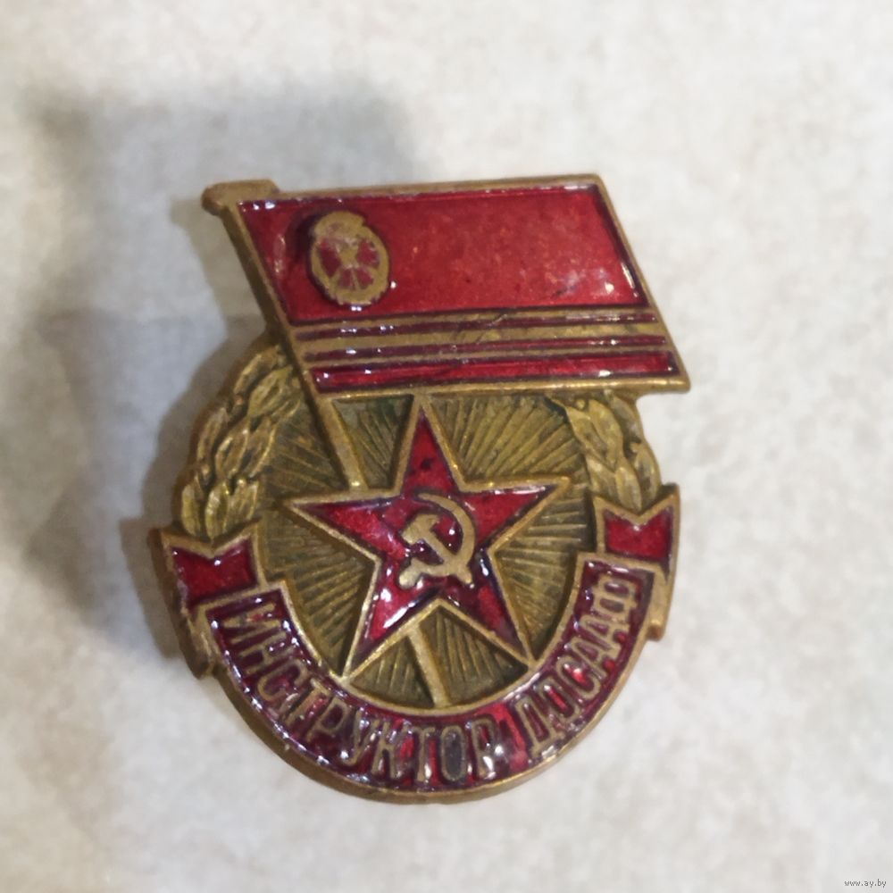 Нагрудный знак. Инструктор ДОСААФ. Тяжёлый металл, горячие эмали. Винт.