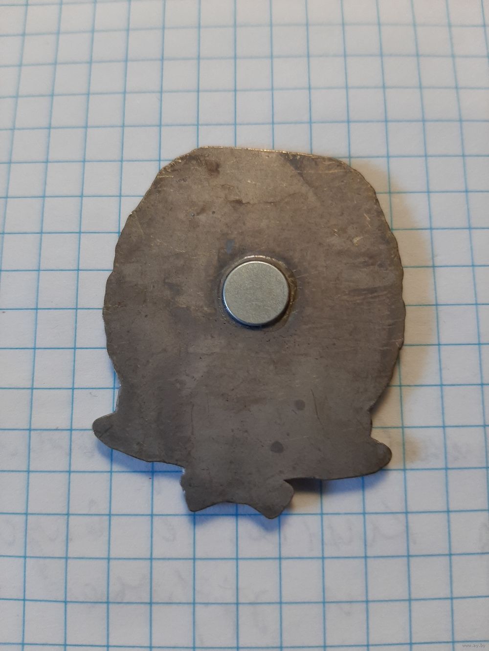 Тяжёлый метал, эмали. По сути, сделан как магнит на холодильник.