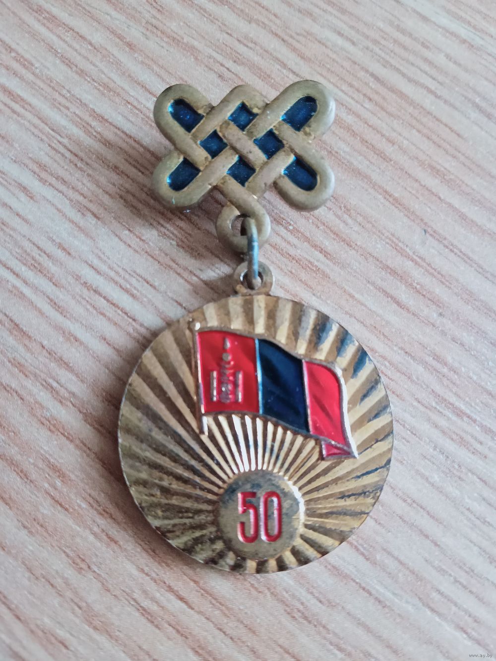 Нагрудный знак 50 лет МНР. Состояние отличное. Тяжёлый метал (латунь), целая эмаль, целая булавка, запаяное промзвено, родной сбор. |