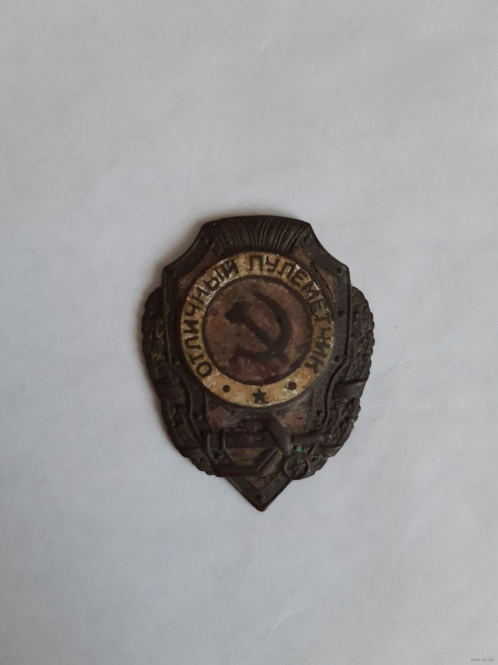 Продаю нагрудный знак "Отличный пулемётчик". В приемлимом состоянии, вероятней всего периода Великой Отечественной Войны. Винт и закрутка не сохранились. Награждения данным знаком производились с 1942 по 1957 гг. Отправлю почтой в пределах Республики Беларусь. Без торга.