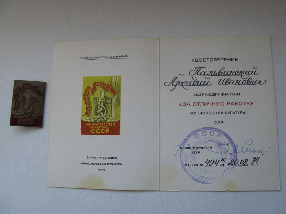 Продам Нагрудный знак с документом ЗА ОТЛИЧНУЮ РАБОТУ времён СССР оригинал