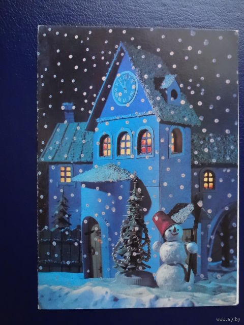 Наилучшие пожелания в Новом году! 1980 г. Дом, снеговик. двойная. чистая.