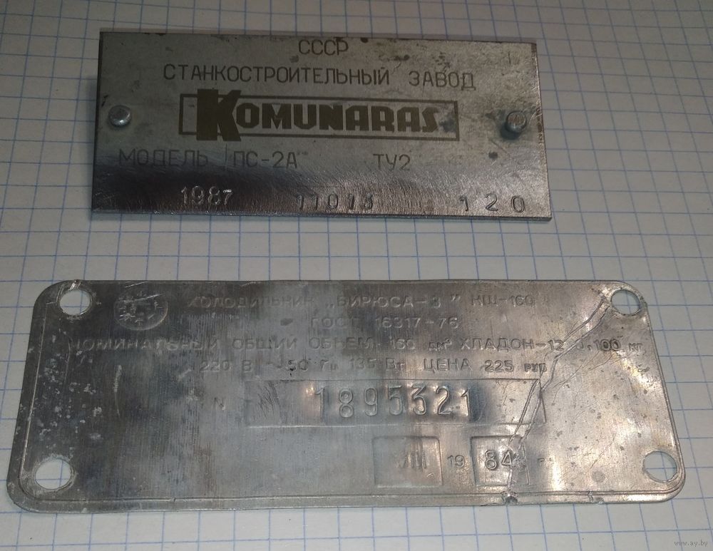 + бонус Шильд Накладка знаменитого Вильнюсского станкостроительного завода «Комунарас» и Шильд холодильник Бирюса-3.