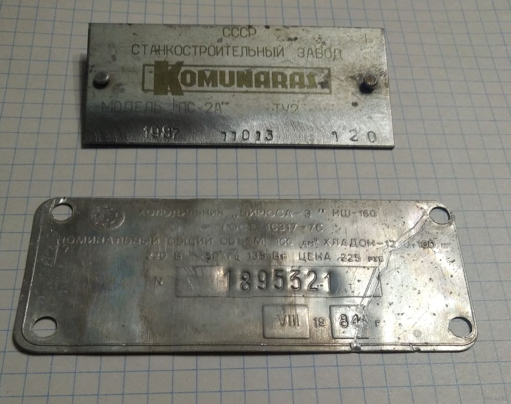 + бонус Шильд Накладка знаменитого Вильнюсского станкостроительного завода «Комунарас» и Шильд холодильник Бирюса-3.