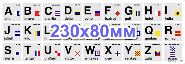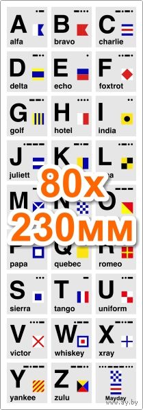 Информационная наклейка «Три Алфавита»: Фонетический (ICAO), Морзе и Морские флаги. Вертикальная или горизонтальная компоновка на выбор